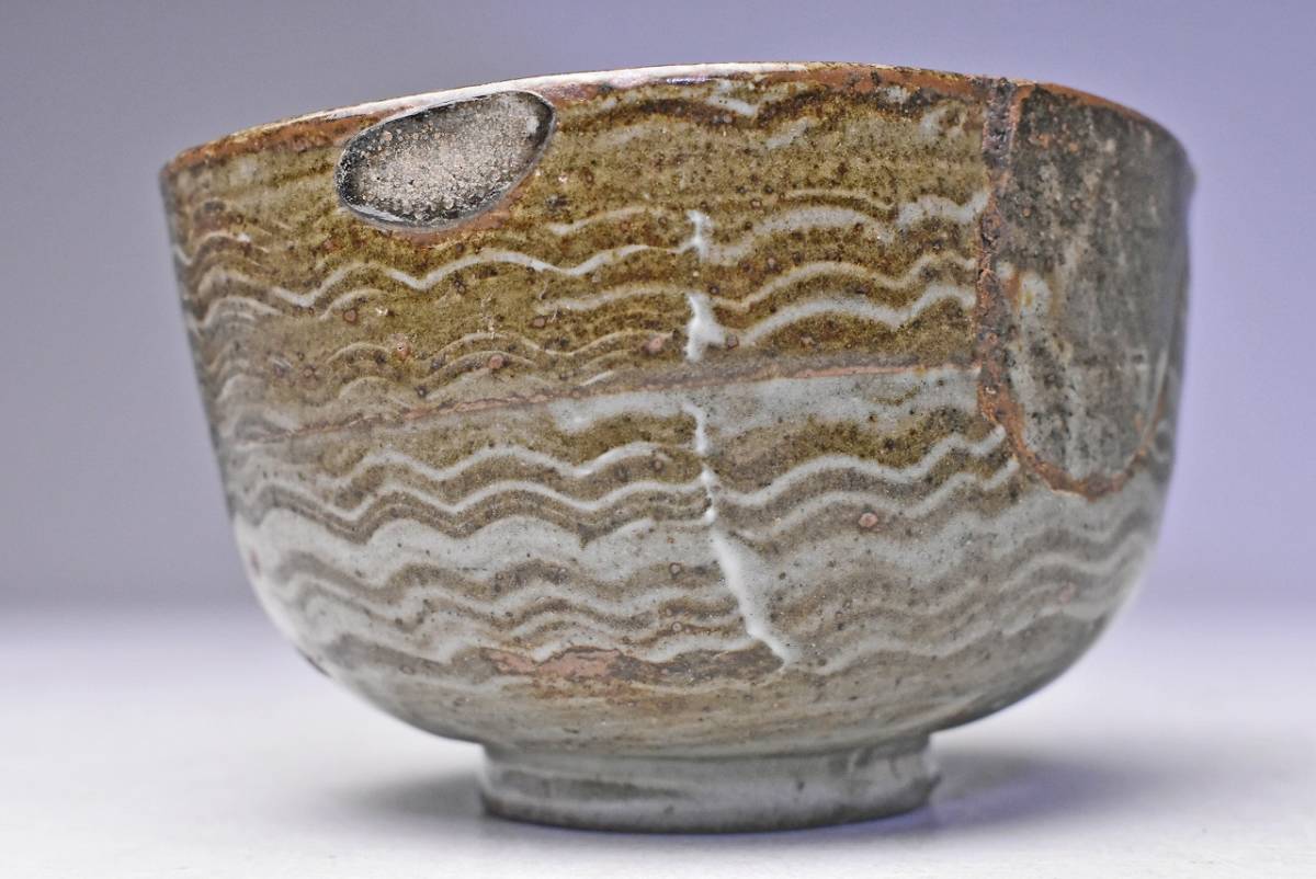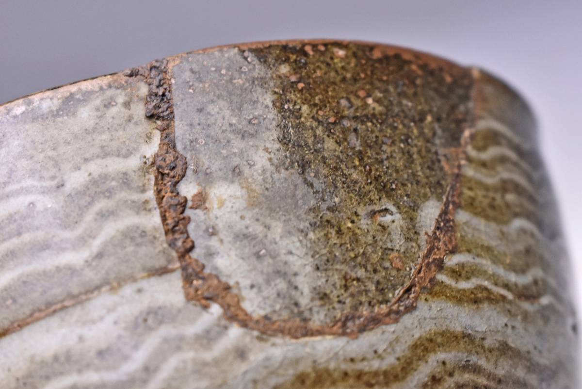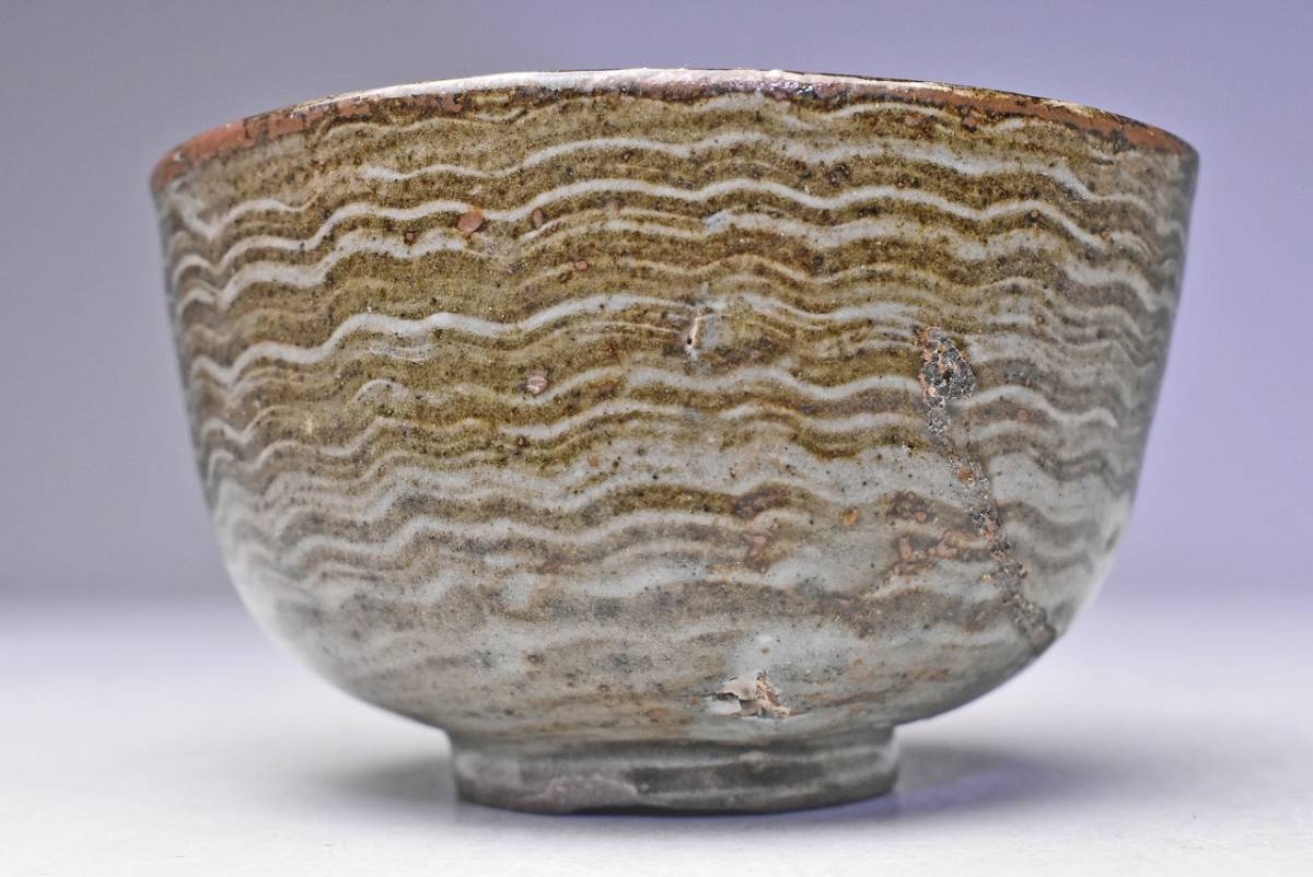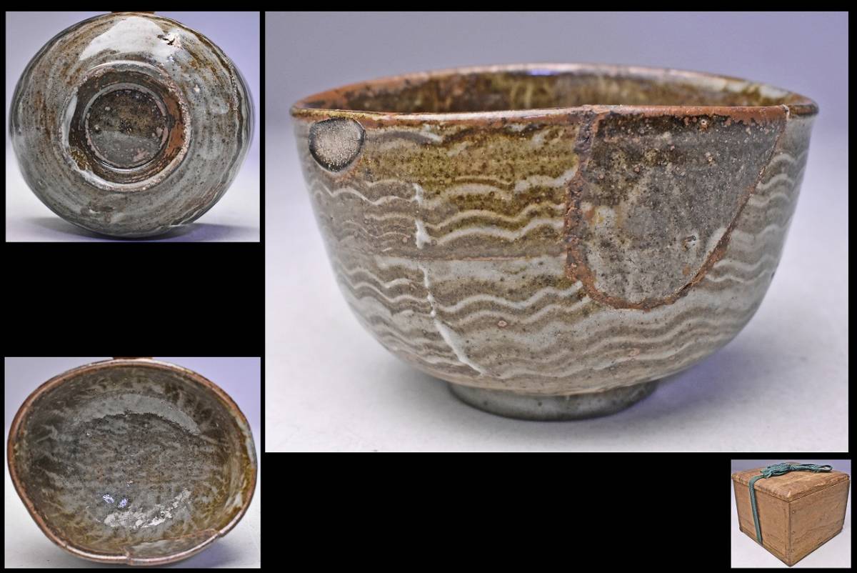 サイズは 93mmx高さ115mm です。 経年変化のある 木箱に入っている、現川の茶碗です。 木箱にはイタミがあります。又、蓋の桟(サン)が外れています。紐も短いです。 お茶碗は 高台部に石ハゼ。胴部分に呼継が施されています。 写真を参考にご入札ください。 宅配便80サイズにて発送します。他にも多数出品してます。同梱対応いたします。
