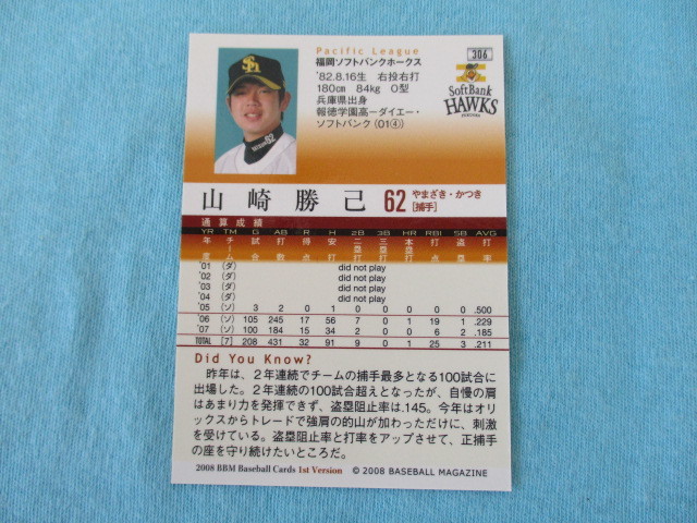 ★BBM 2008★1st Version〔306 山崎勝巳 福岡ソフトバンクホークス〕トレカ♪