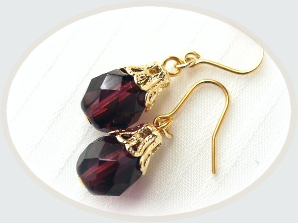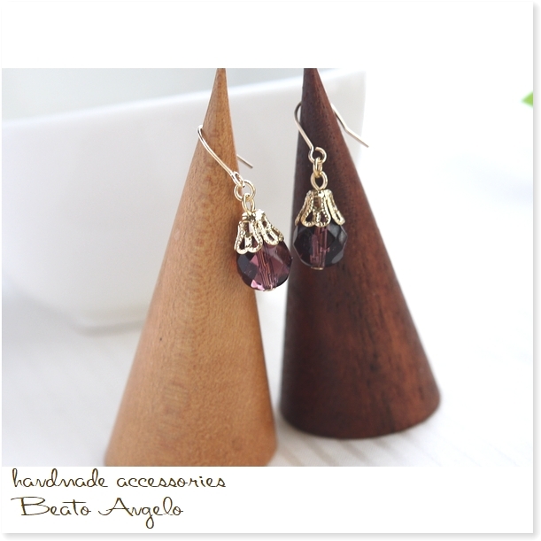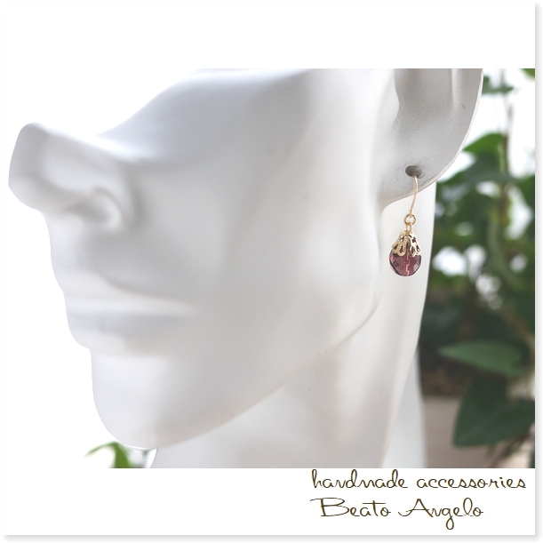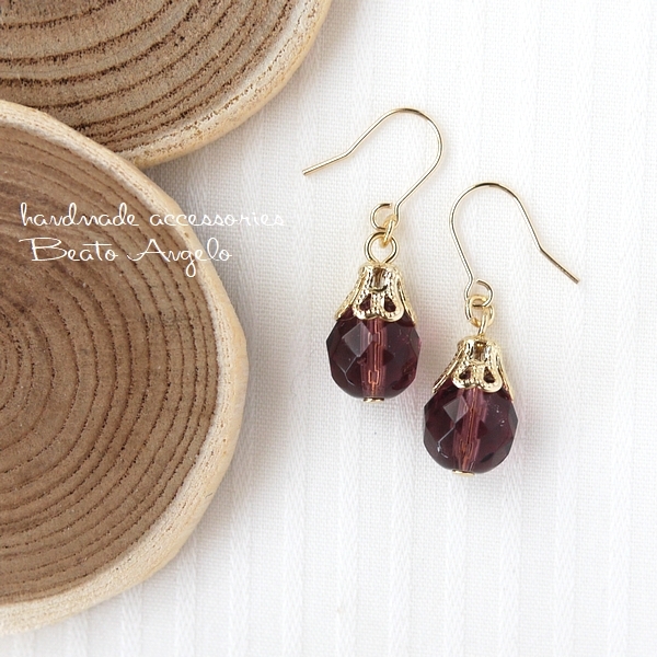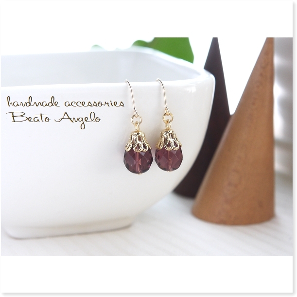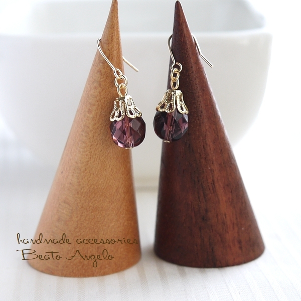 ◆◆+angelo+チェコビーズの一粒ピアス(p-270)アメジスト G c001 パープル シンプル チタン 樹脂 イヤリング