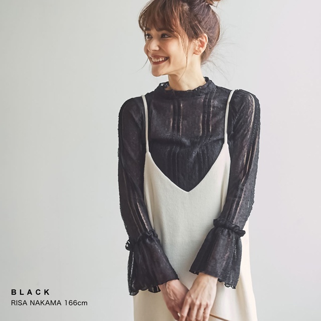 新品 Re:EDIT リエディ 大石参月着用 レースブラウストップス ブラウス 長袖カットソー ブラック 黒 M 春夏
