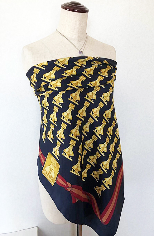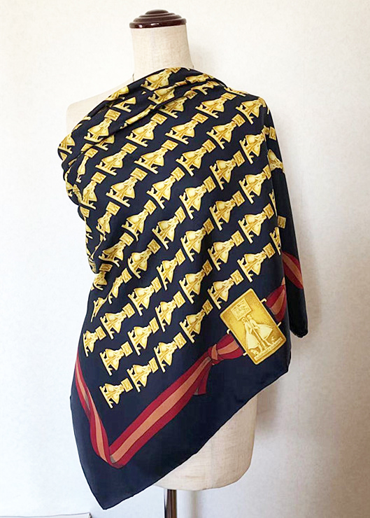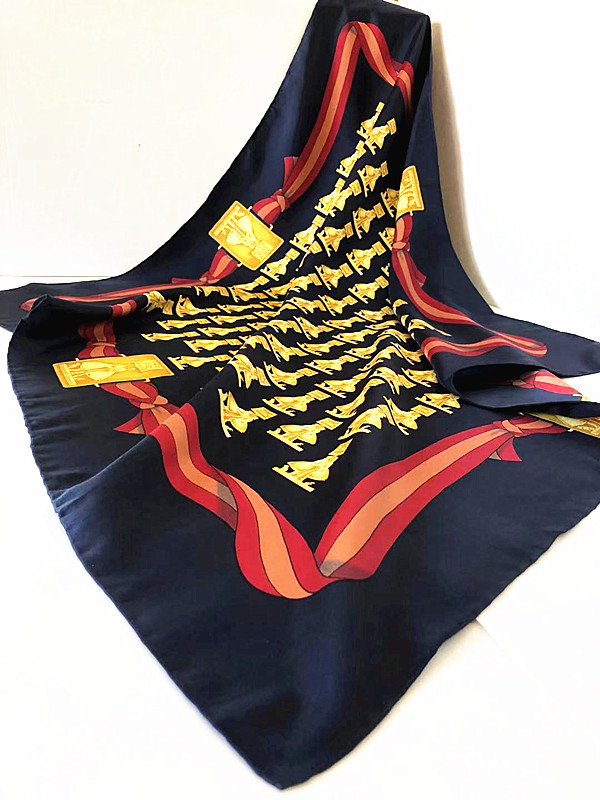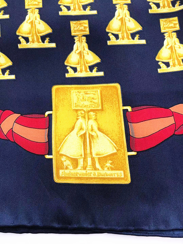 イタリア製Burberry バーバリー【超レア柄】◆ビンテージ定番戦馬騎士人物&犬ロゴ入り総柄シルク大判スカーフ★86×87㎝