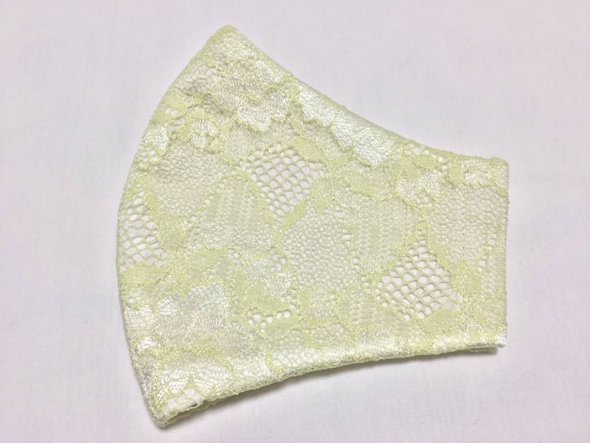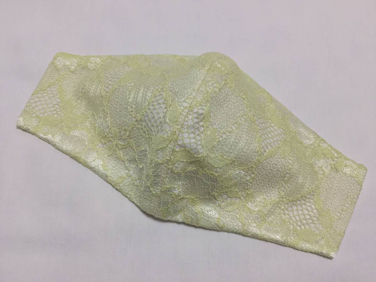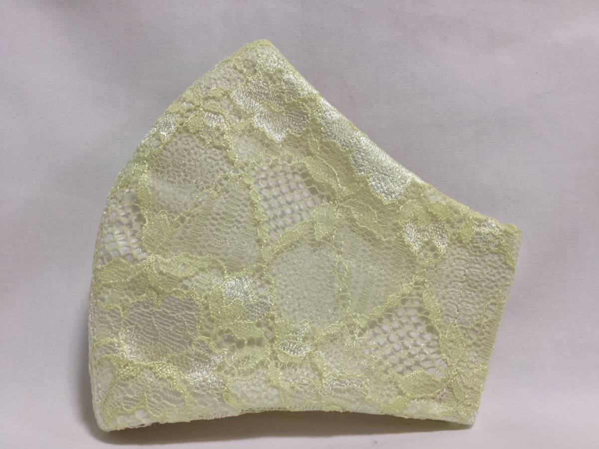 ■ファンデ汚れ解消~♪ ゴージャスレース ライムグリーン 結婚式 ブライダル パーティー 3層 stylishライン 大人用立体マスク 送料140円♪