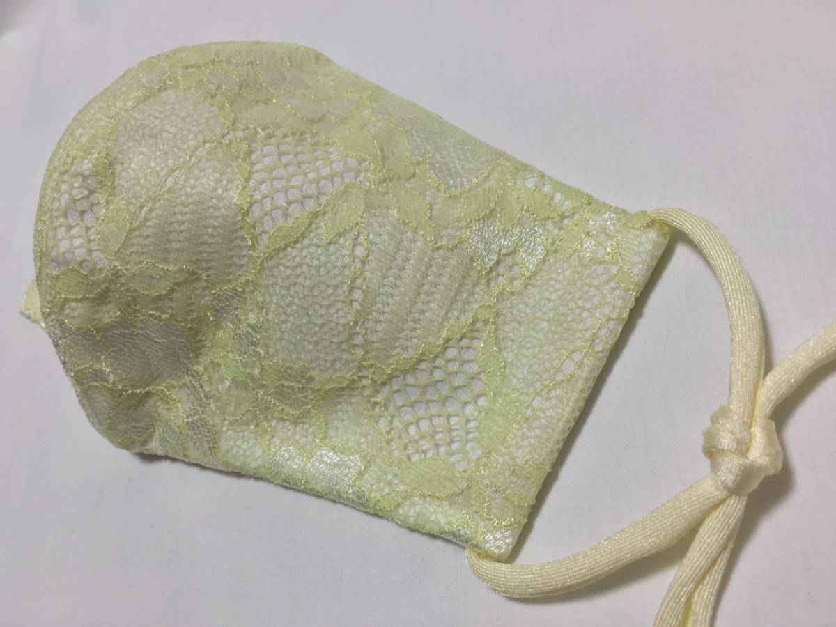 ※独自の型紙でスタイリッシュに仕上げました。ふんわり感を出す為に縁取りのステッチを施してありません。横幅を広目にとり、耳に近い縦の幅を狭めて小顔効果も♪ 両サイドはゴムも通せます。ゴージャスなレースで上品な雰囲気に仕上げましたので、ブライダル、パーティー等の会場に映えると思います。裏地もファンデ汚れが目立ちにくいベージュにしました。 画像最後の紐(クリームイエロー:各80円)は別で出品しております。 尚、素人が製作した為、完ぺきなお品を期待される方はご入札をご遠慮下さいませ。