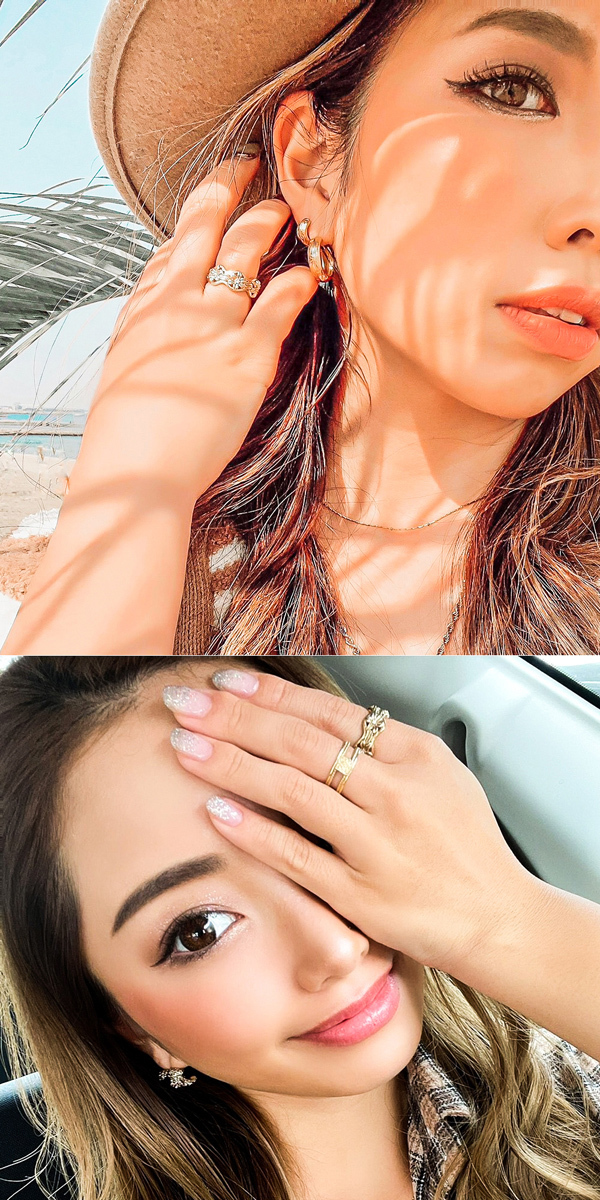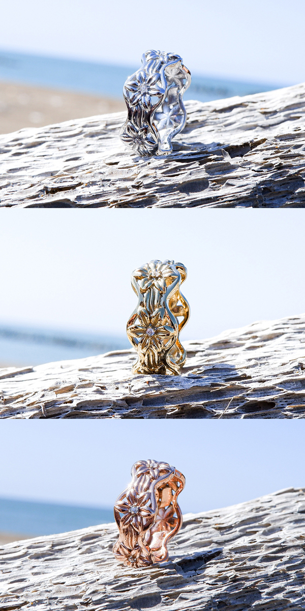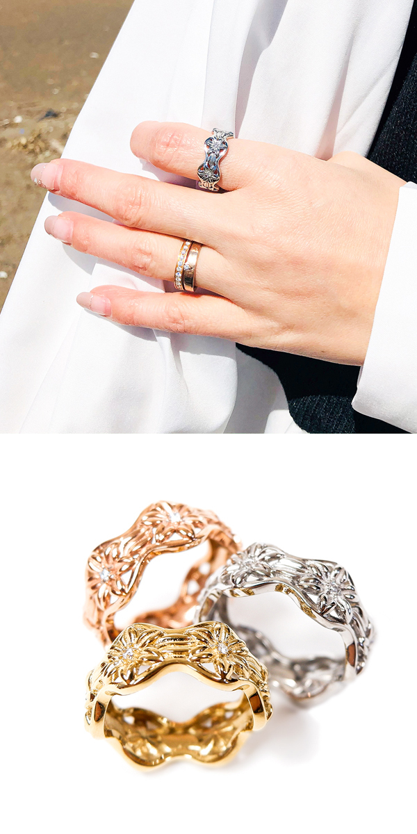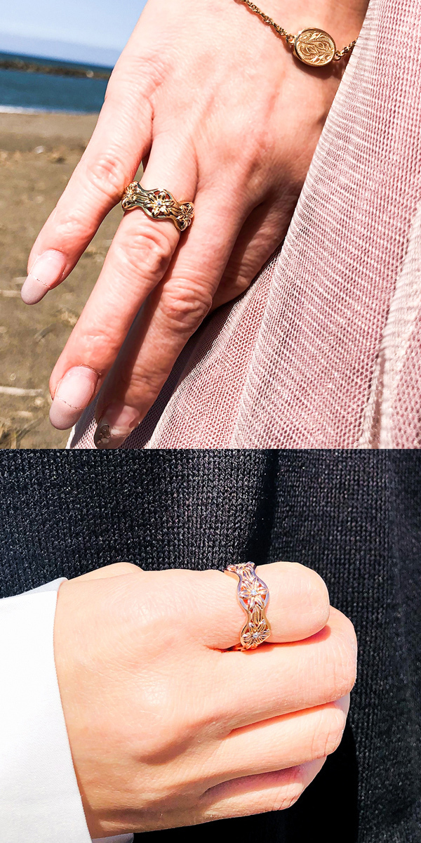 ★SNS★ハワイアンジュエリー★金属アレルギー&温泉&海水浴ご使用OK★ステンレスリング★花&ジルコニア&ゴールド&ピンクGD&シルバー