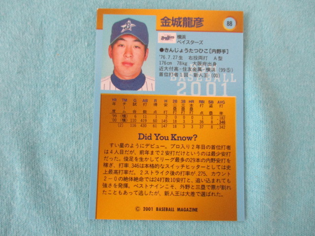 ★BBM 2001★〔88 金城龍彦 横浜ベイスターズ〕サイン(印刷) トレカ♪