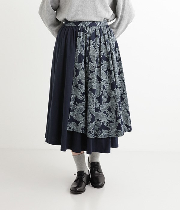 新品 corail  リーフプリント×スラブ天竺切替 スカート