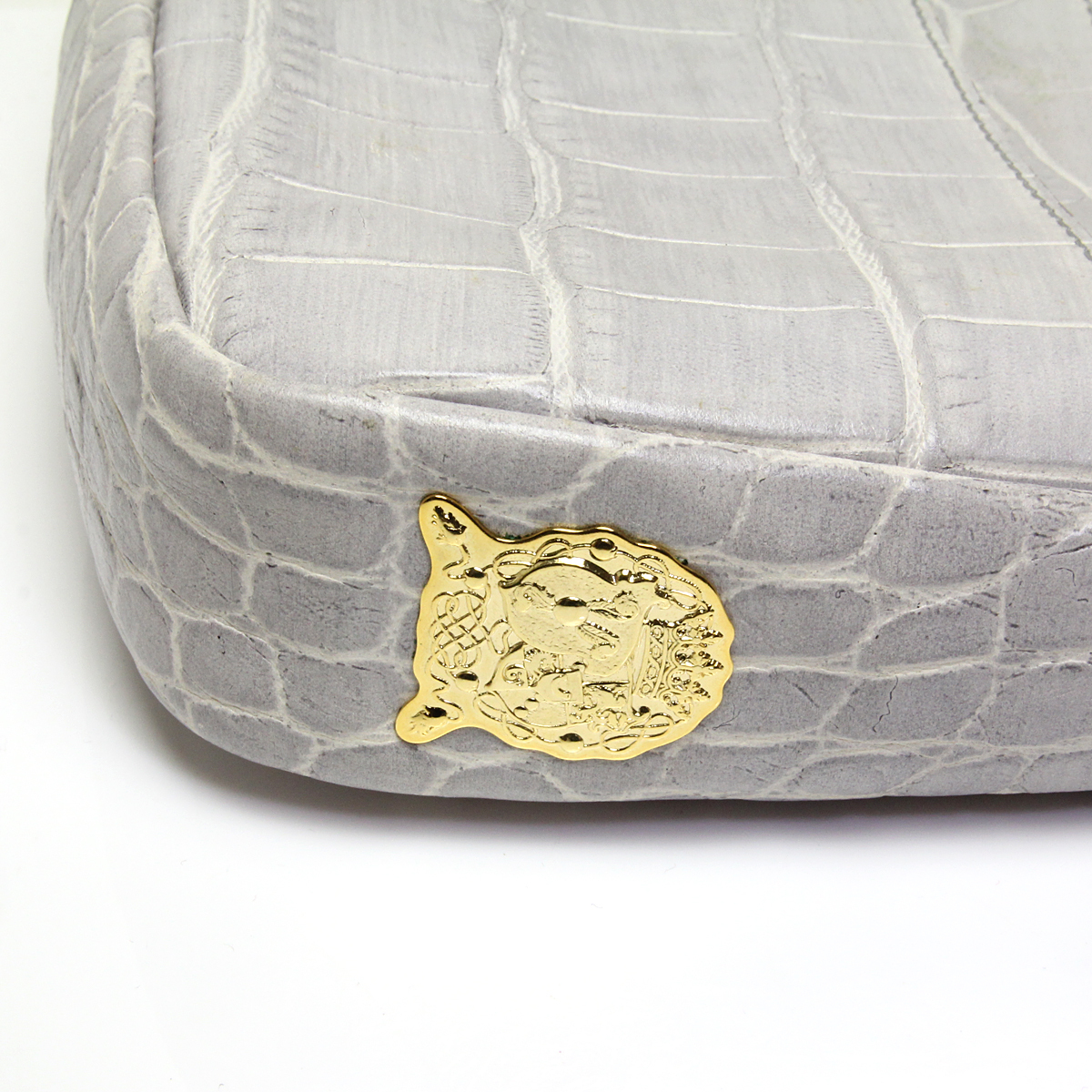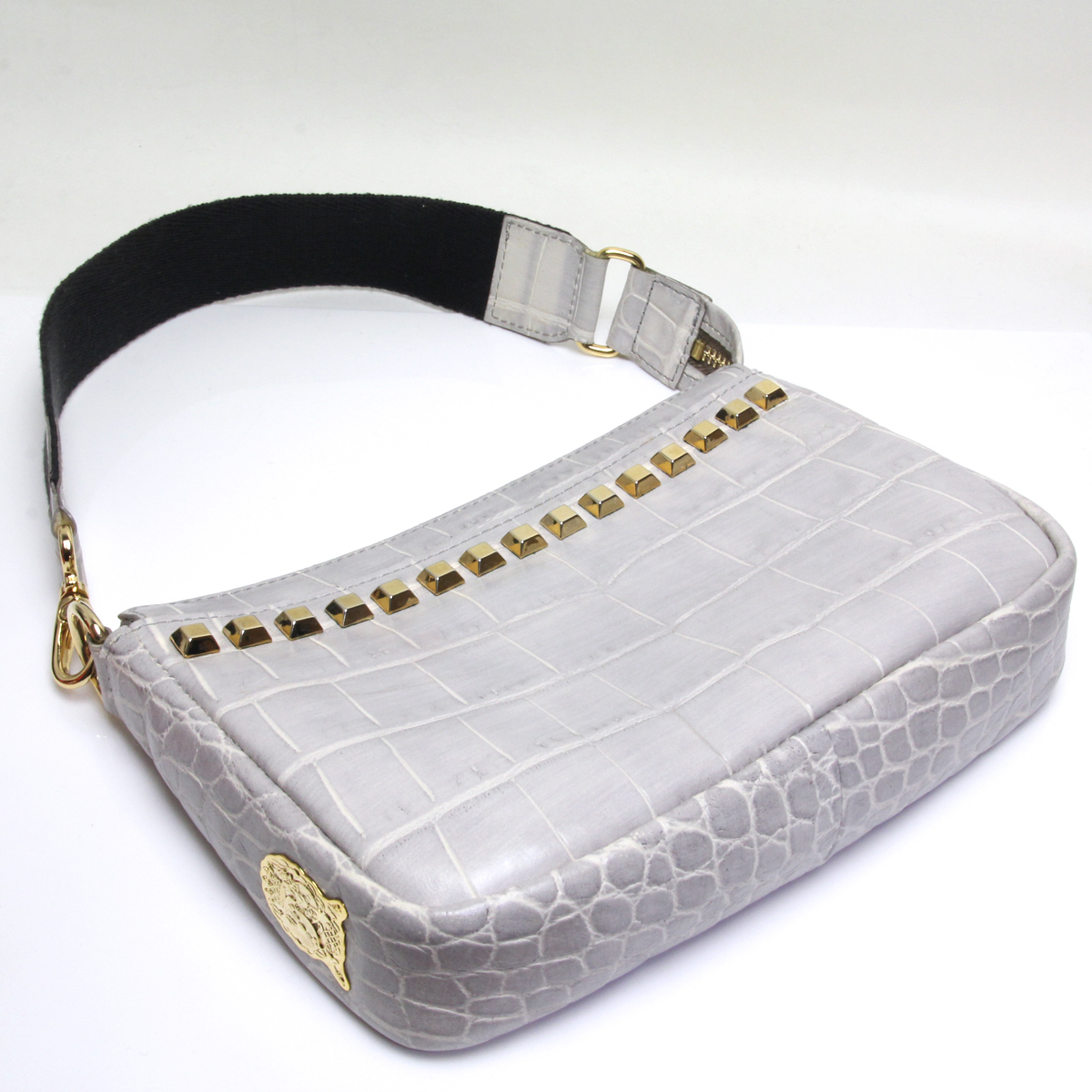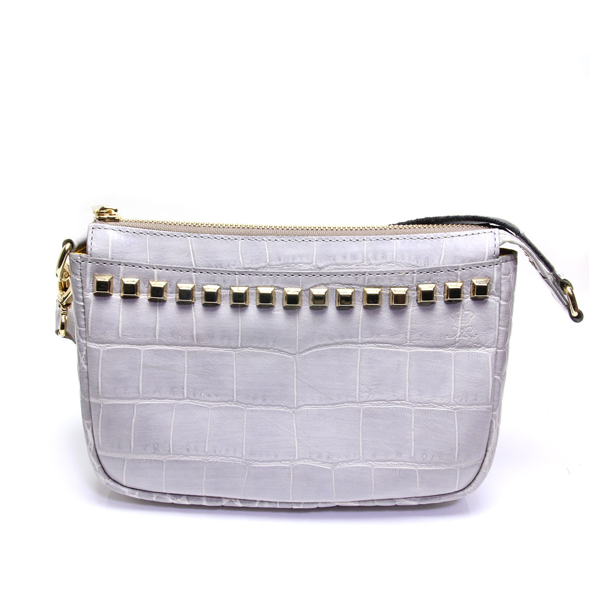 ADMJ クロコ 型押し スタッズ アクセサリポーチ ミニショルダー バッグ グレー