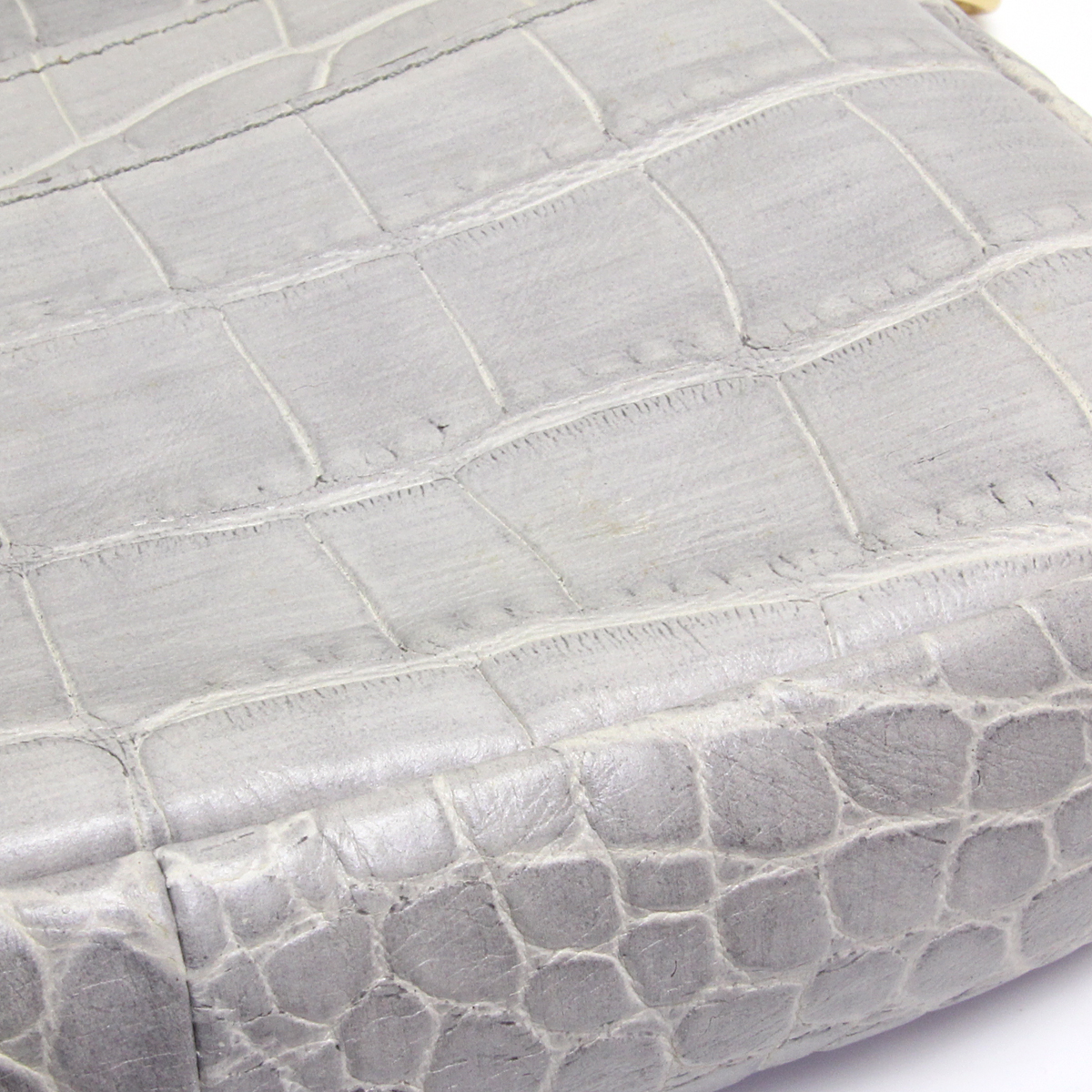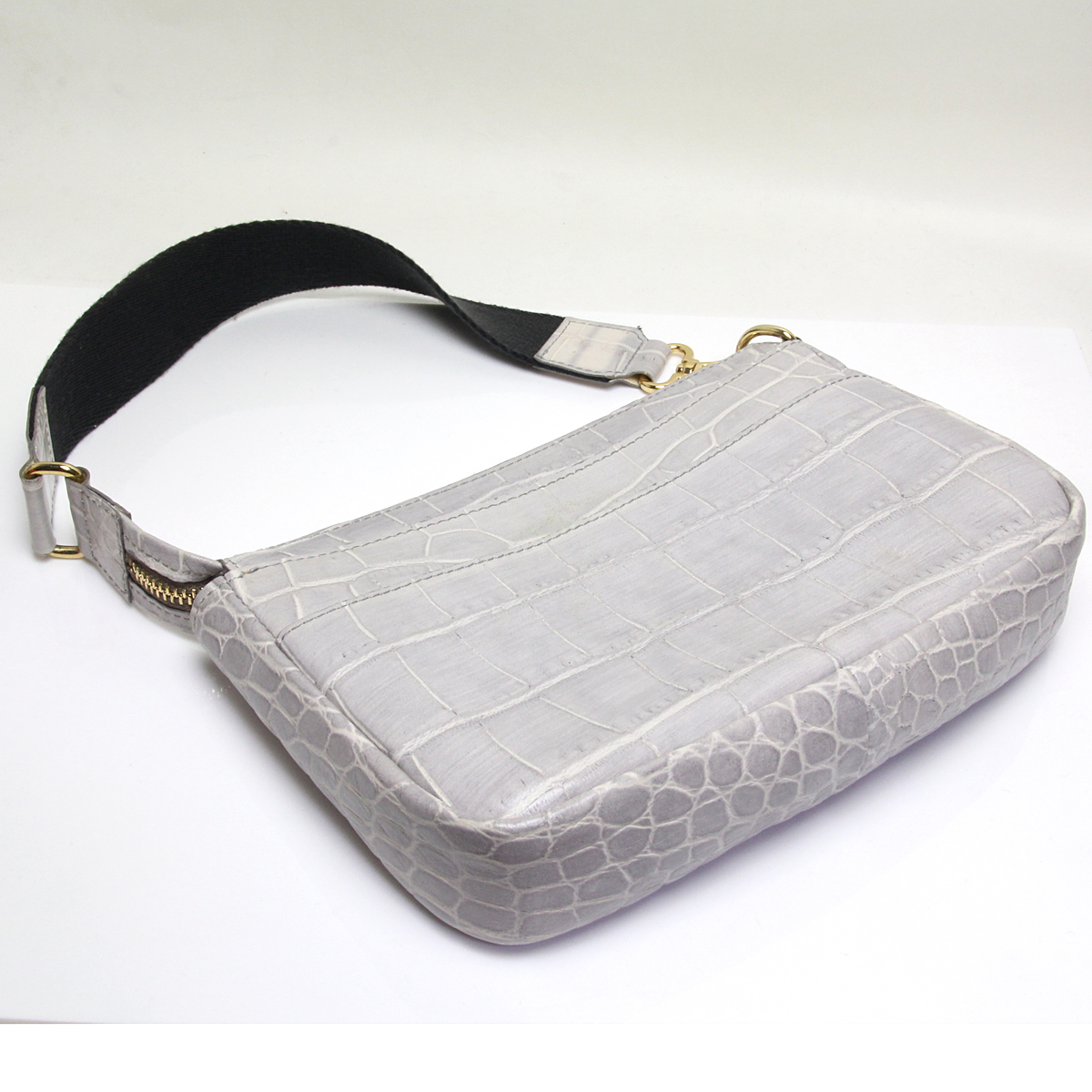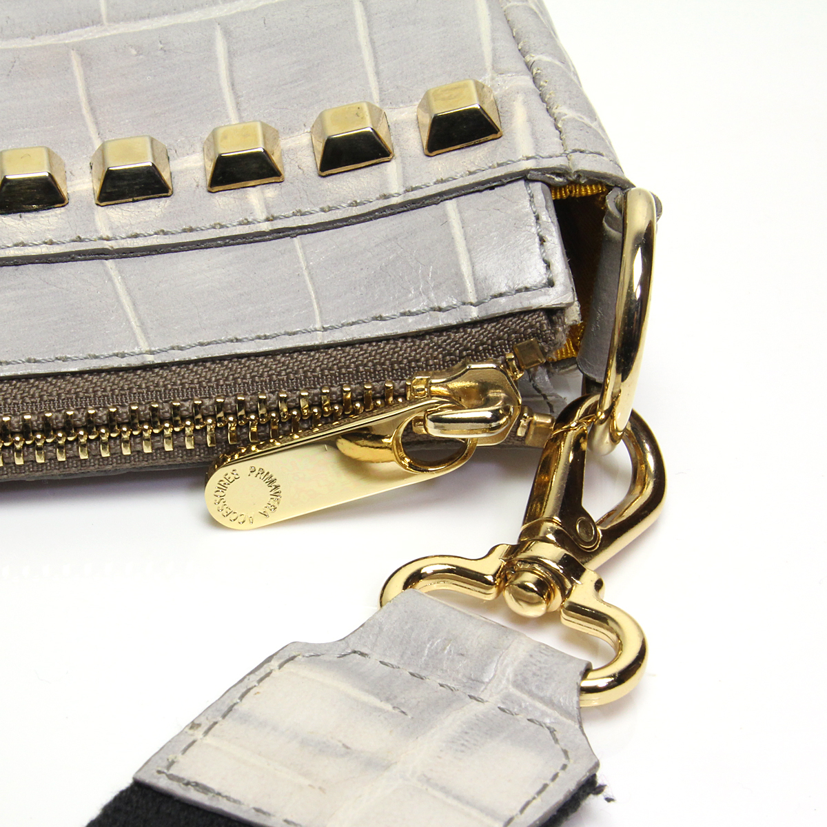 ADMJ クロコ 型押し スタッズ アクセサリポーチ ミニショルダー バッグ グレー