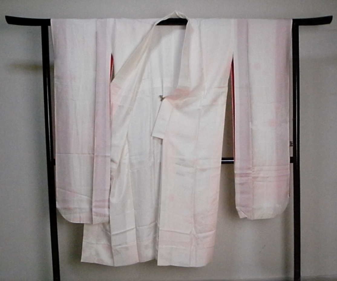 長襦袢・・・超美品  正絹綸子 地模様菊花柄  衿に極々薄い汚れ有り