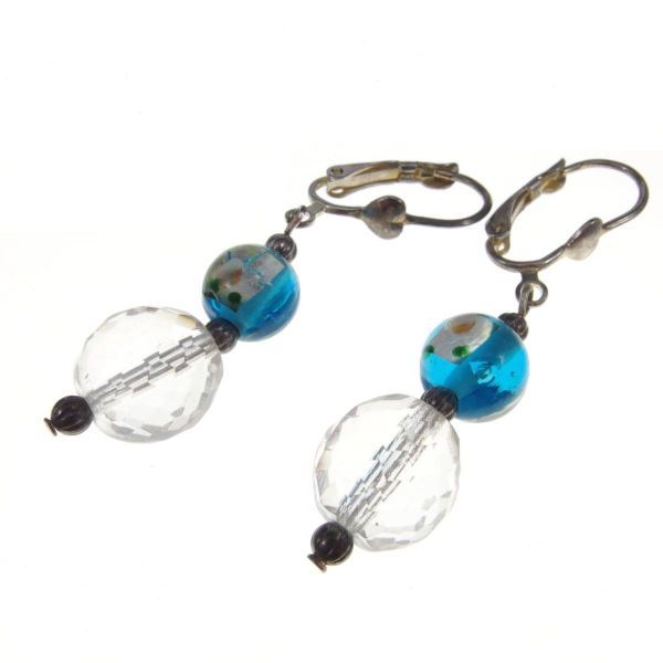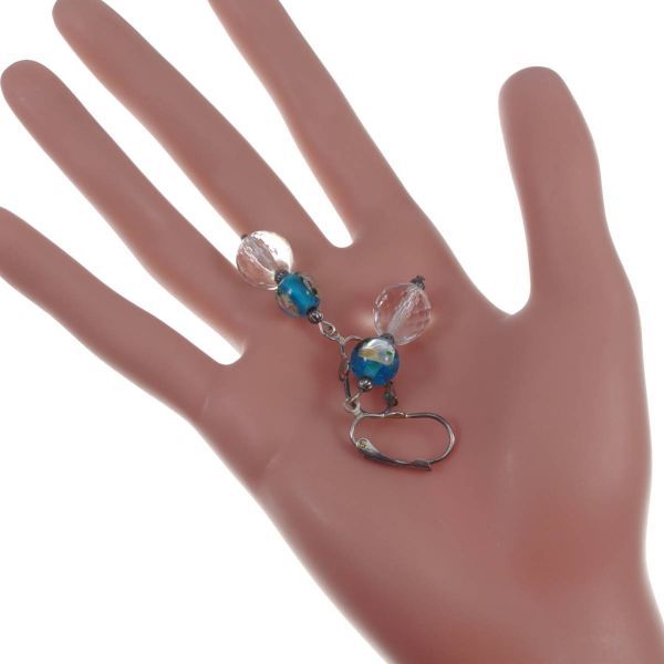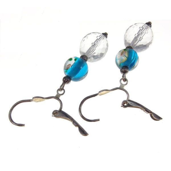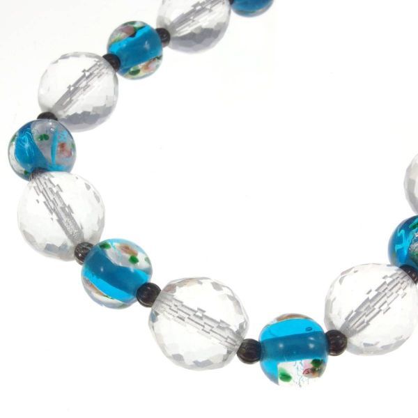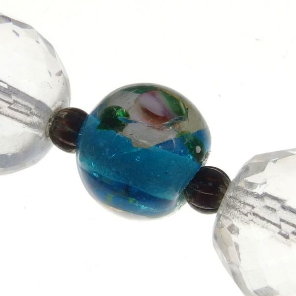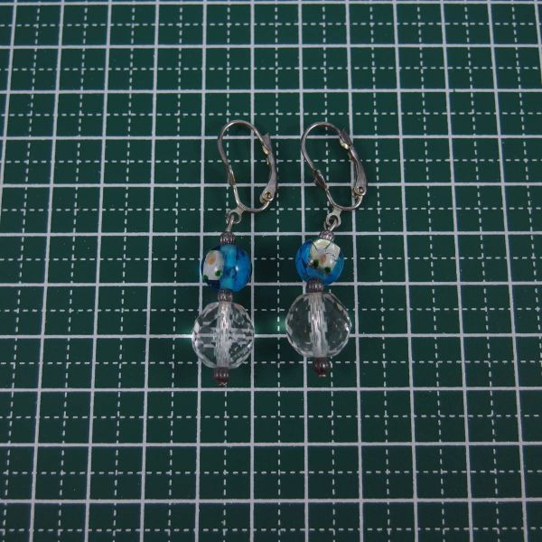 ・柄付きの青いビーズはガラス製、クリアビーズはプラスチック製です。