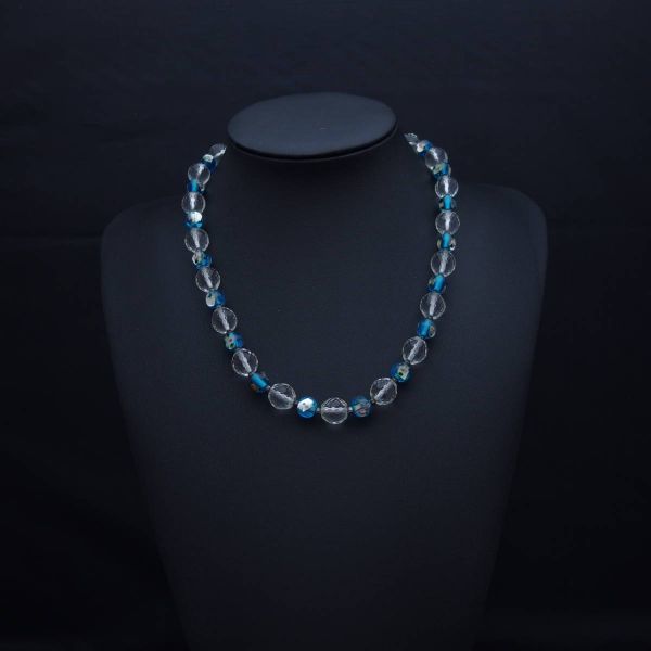 ・ネックレスおよびピアスの青いガラスビーズのいくつかに浅いヒビや浅いうち傷が見られます。着用時に気になるようなものではないかと個人的には思われますが、一例の拡大画像も掲載しておりますのであらかじめご確認くださいませ。ビーズの強度面も不安はございません。