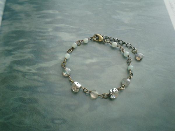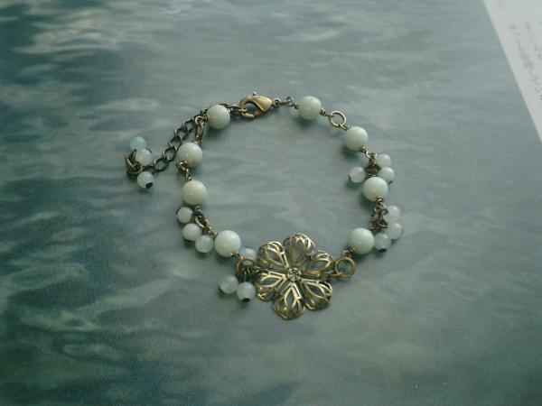 仏蘭西映画みたいに♪爽やかなアマゾナイトのブレスレット2本セットです♪お花の透かしパーツは20ミリ位で6ミリと4ミリのアマゾナイトの丸玉を合わせました♪可憐な雰囲気で可愛いです♪長さは全長22センチ位で調節自由です♪6ミリのジルコニアやラブラドライトや4ミリのアマゾナイトはちょっと華やかにまとめました♪長さは全長22センチ位で調節自由です♪どちらのブレスレットもさりげなくロマンチックしています♪仏蘭西映画をイメージして作りました♪シンプルで飽きのこないいつまでも着けられるデザインを考えて作りました!お揃いのネックレスも出品しています♪ハンドメイドをご理解頂いてノークレーム、ノーリターンでお願いします