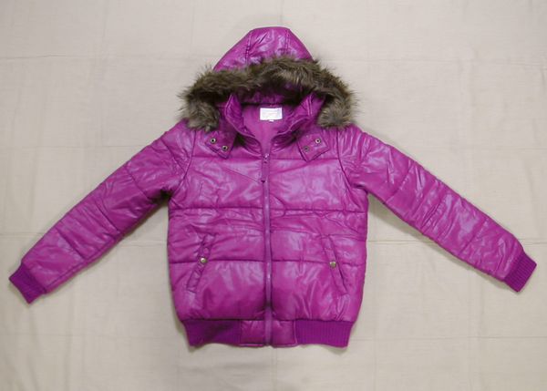 ■美品:紫系外せるファーフード付ジャンパー 中綿入りM   DmN60