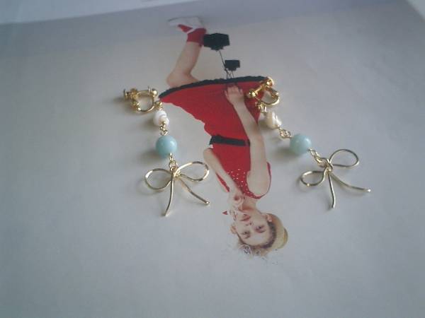 やさしい春に・・シリーズです♪繊細なブルーグレーのアマゾナイトのイヤリングです♪8ミリの丸玉のアマゾナイトにリボンのチャームやキュートなベージュシェルを合わせて可憐な表情です♪長さは全長7センチ位です♪♪ピアスにも変更出来ます♪お揃いのネックレスやブレスレットも出品しています♪シンプルで飽きのこないいつまでも着けられるデザインを考えて作りました!ハンドメイドをご理解頂いてノークレーム、ノーリターンでお願いします