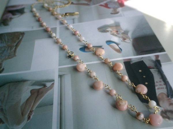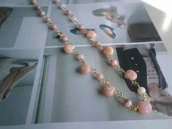 女の子的ディテール・・シリーズです♪甘すぎないピンク・・シックなピンクオパールのネックレスです♪6ミリの丸玉、10ミリのマロンのピンクオパールにジルコニアリングを合わせてキュートな表情です♪長さは全長84センチ位で調節自由です♪2連にされても素敵です♪♪お揃いのブレスレットも出品しています♪ハンドメイドをご理解いただいたノークレーム・ノーリターンでお願いします♪