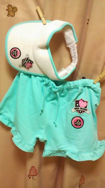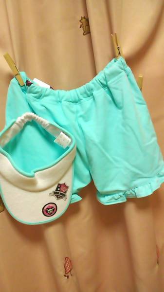 ◆パイル素材サンバイザーとフリルショートパンツのセット(パンツはパイル素材ではありません)♪ドクロやハートのキラキラワッペン付