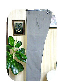 上品セレブの個性的モード派シャドーチョークストライプ織柄のカジュアルパンツです。フロントに コイン(ウオッチ)ポケット付きのこだわりデザイン そして ノータックパンツです。しゃきっとした薄地素材は 綿混細糸使用のはき心地の良い生地です。色は 上品なカーキがかったモスグレー色の薄地です。サイズは ウエスト 実測 83cm   渡り幅 33cm 腿幅(股下 10cmの所) 30cm 裾幅 21cm 前股上 23cm 股下(フリー状態) 88cmです。勿論 新品ですので、ご希望どおりの長さ等で裾上げして、着用して頂けます。 そして、御希望により 裾上げ修理等も 実費にて承ります。こちらは 某有名メーカー品ゆえ メーカー配慮の為 ネームタグ等は取り外してあります。それ故 超安値の処分価格スタートとなります。よって お買い得となっております。 また アウトレット商品ゆえ 折り目部分 等に 程度の違いはありますけど 色ヤケ有りのジャンク品です。普段着 作業衣 等として ご活用下さい。ただ ダメージ感覚で着用するラフカジュアルパンツゆえ 賢くご着用下さい。そして、ジャンク度レベルによってスタート価格が違います。 尚 毎週木曜日は業務定休日で御座います。ご連絡御発送とも休業日明けにずれ込む事御了承下さい。 以上宜しくお願い申し上げます。