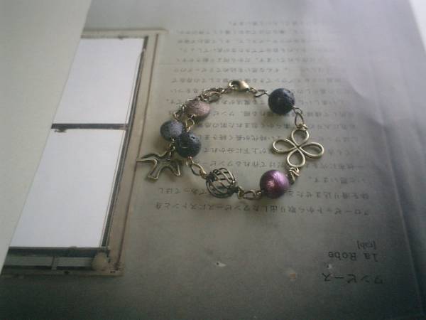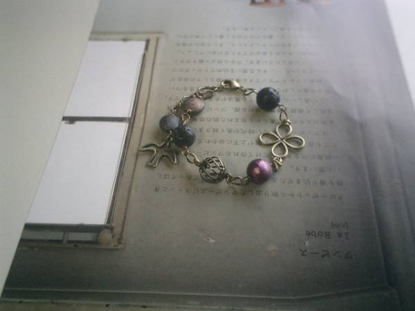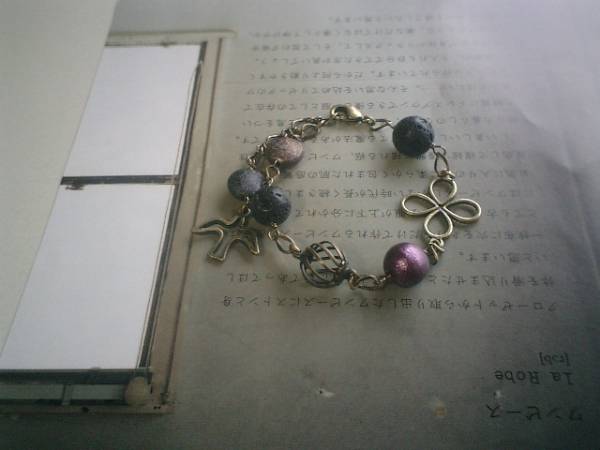 シック・フレンチの定義・・シリーズです♪大人の表情・・アンニュイな雰囲気でまとめたブレスレットです♪アートっぽいラバーストーンは溶岩石とよばれるように自然な黒とデザインがキュートです♪さりげなくパリっぽいグレーやパープルピンクのデザインビーズやお花のチャームを合わせました♪ラバーストーンは10ミリの丸玉、デザインビーズは10ミリ位のコインです♪お花のチャームは20ミリ位です♪長さは全長23センチ位で調節自由です♪♪お揃いのネックレスも出品しています♪♪シンプルで飽きのこないいつまでも着けられるデザインを考えて作りました!ハンドメイドをご理解頂いてノークレーム、ノーリターンでお願いします