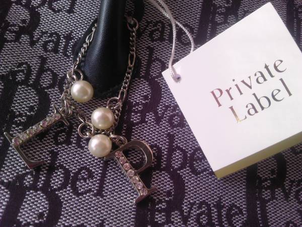 ◆チャーム: シルバーのチェーンにシルバーのアルファベットプレート(PとL、各1個)、パール3個