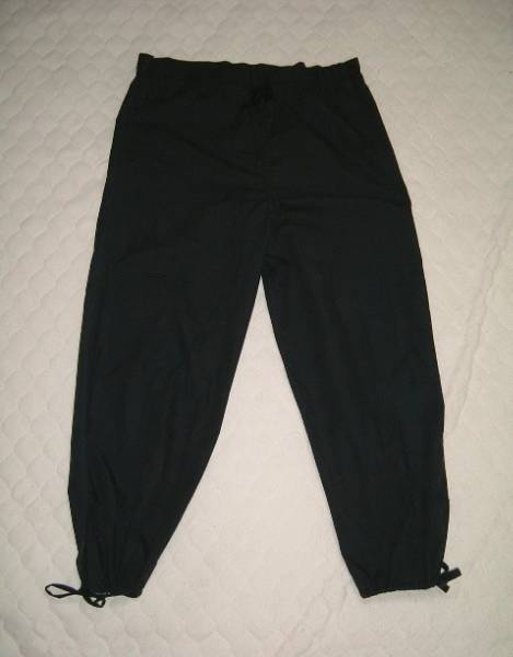 ・新品ではありませんが、比較的綺麗な状態です。気になる方はご遠慮ください。 ・ウエストは細いゴム入りです。 ・お色は、黒。 ・サイズは、M。実寸で、ウェスト幅46 股上38 股下68センチ ・素材は、表示がありませんが、綿のようです。 |