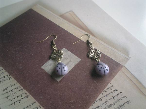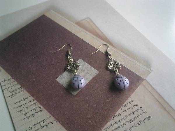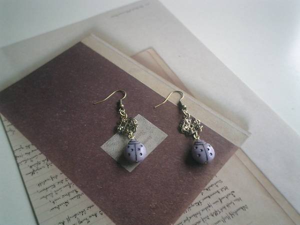 イノセント・ガール・・シリーズです♪キュートなてんとう虫さんのピアスです♪チェコのてんとう虫さんに透かしチャームを合わせてシックにロマンチックしています♪てんとう虫さんは12ミリ×15ミリ位です♪長さは全長5・5センチ位です♪イヤリングにも変更出来ます♪お揃いのネックレスやブレスレットも出品しています♪シンプルで飽きのこないいつまでも着けられるデザインを考えて作りました!ハンドメイドをご理解頂いてノークレーム、ノーリターンでお願いします