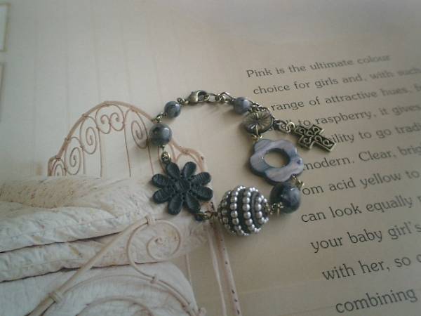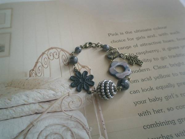 エゴイスト・少女・・シリーズです♪グレー・アーティスト・・シックなラブラドライトのブレスレットです♪6ミリ、8ミリ、10ミリ位の丸玉のラブラドライトにシェルフラワー、黒蝶貝、フラワーチャーム、スパイラルビーズなど個性的な素材を合わせてロマンチックな表情です♪長さは全長23センチ位で調節自由です♪同じシリーズのデザイン違いやお揃いのネックレスも出品しています♪シンプルで飽きのこないいつまでも着けられるデザインを考えて作りました!ハンドメイドをご理解頂いてノークレーム、ノーリターンでお願いします
