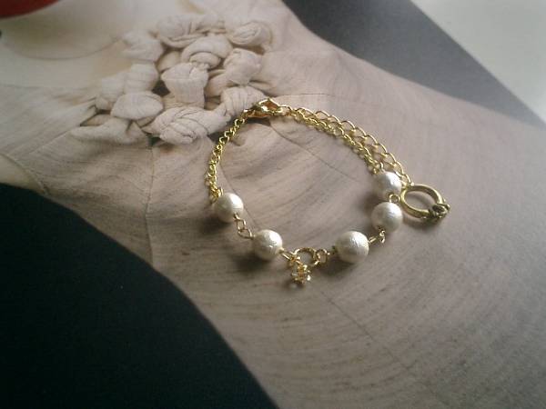 ロマンチック・セレクト・・シリーズです♪オフホワイトのコットン・パールのブレスレットです♪ジルコニアのドールリングを合わせて可憐な表情です♪コットン・パールは8ミリ位です♪長さは全長23センチ位で調節自由です♪お揃いのネックレスも出品しています♪シンプルで飽きのこないいつまでも着けられるデザインを考えて作りました!ハンドメイドをご理解頂いてノークレーム、ノーリターンでお願いします