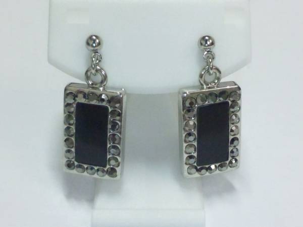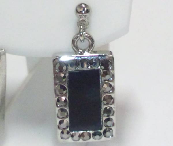 新品 黒ラインストーン&スクエアーチャームピアス チタンポスト