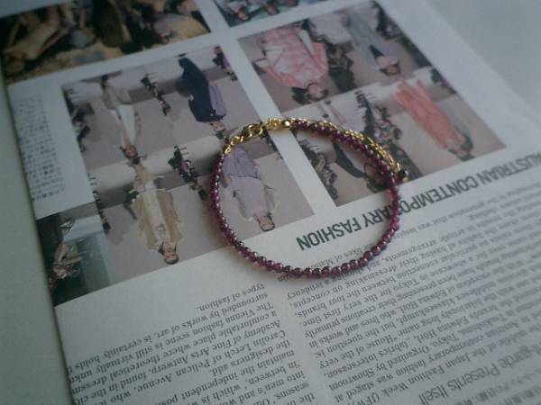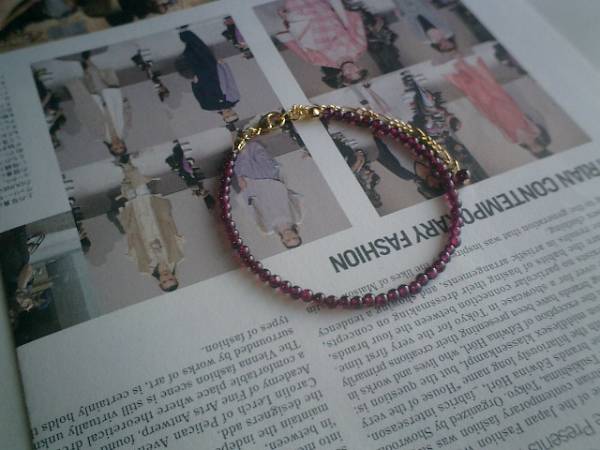 女の子の憧れ・・シリーズです♪深い赤のガーネットのブレスレットです♪小粒のガーネットが可憐な表情です♪ガーネットは3ミリの丸玉です♪長さは16センチ+アジャスター6センチで全長22センチ位です♪お揃いのネックレスも出品しています♪♪シンプルで飽きのこないいつまでも着けられるデザインを考えて作りました!ハンドメイドをご理解頂いてノークレーム、ノーリターンでお願いします |