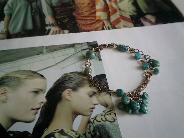 ノスタルジック・スタイル・・シリーズです♪アジアンチック・・シックなターコイズのブレスレットです♪4ミリから8ミリくらいまでの丸玉やスクエア、さざれなどデザイン違い、大きさ違いのターコイズにデザインチェーンを合わせてアジアン・モダンしています♪長さは16センチ+アジャスター6センチで最長22センチ位です♪お揃いのネックレスやイヤリングも出品しています♪シンプルで飽きのこないいつまでも着けられるデザインを考えて作りました!ハンドメイドをご理解頂いてノークレーム、ノーリターンでお願いします