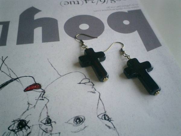 アート・クチュール・・シリーズです♪オニキス・パンク・・シックなオニキスのクロスのピアスです♪ペア1組です♪存在感のある30×20ミリのオニキスクロスはさりげなくパンクな表情です♪長さは全長5・5センチ位です♪イヤリングにも変更出来ます♪♪お揃いのネックレスも出品しています♪♪シンプルで長く着けていただけるデザインを考えて作りました♪ハンドメイドをご理解頂いてノークレーム、ノーリターンでお願いします