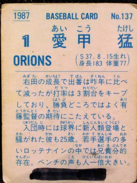 1987年、ロッテの愛甲猛のカードです。