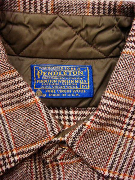 ビンテージ PENDLETON ペンドルトン USA製 タータン チェック 総柄 ウール シャツ ジャケット 茶 ブラウン サイズ M アウトドア スリム 色