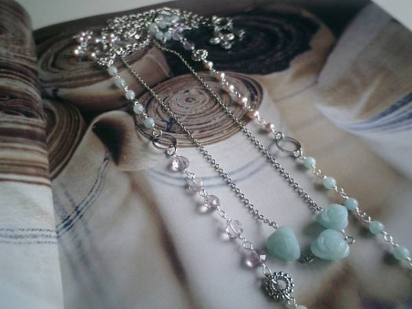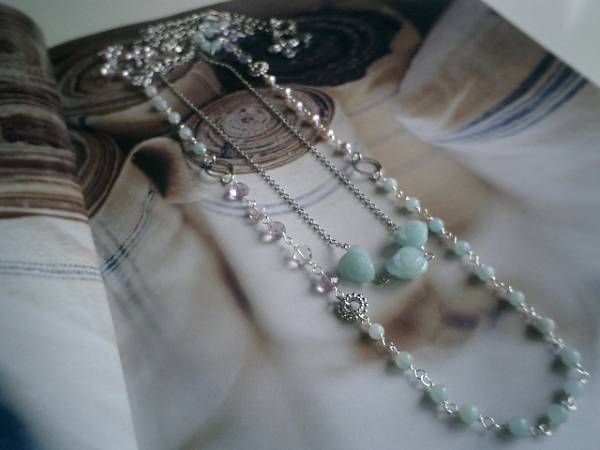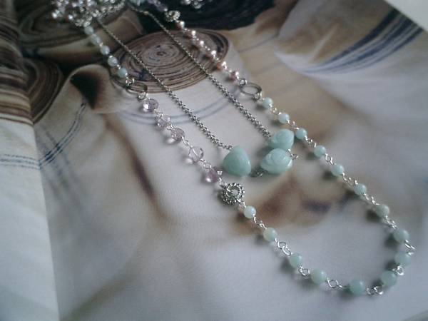 | 6月のクローゼット・・シリーズです♪可憐な水色・・アマゾナイトのネックレス2本セットです♪淡いブルーグレのアマゾナイトが繊細で可憐な表情です♪10ミリ位のアマゾナイトの薔薇は華奢なチェーンを合わせました♪長さは45センチ+アジャスター12センチで最長57センチ位です♪4ミリの丸玉のアマゾナイトは淡水パールの丸玉や7ミリのコインカットのアメジストを合わせてマニッシュな表情です♪長さは全長97センチ位で調節自由です♪2連にされても素敵です♪♪それぞれ単品やブレスレットやピアスも出品しています♪シンプルで飽きのこないいつまでも着けられるデザインを考えて作りました!ハンドメイドをご理解頂いてノークレーム、ノーリターンでお願いします |