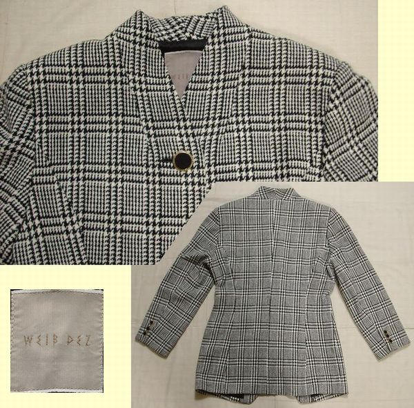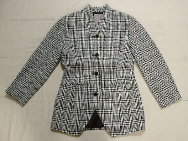■美品:モノトーン格子柄ジャケット カシミヤ混 日本製M位 DmT60
