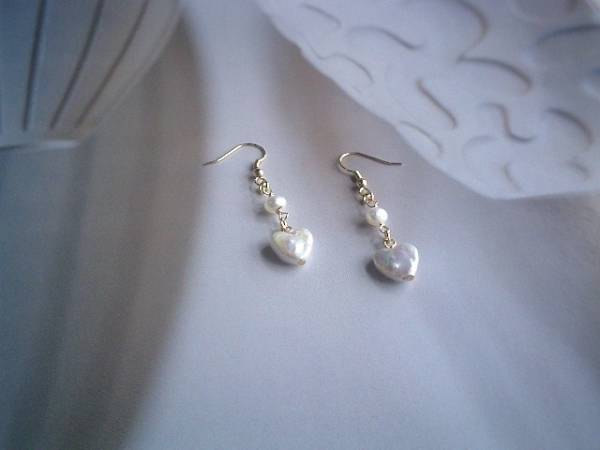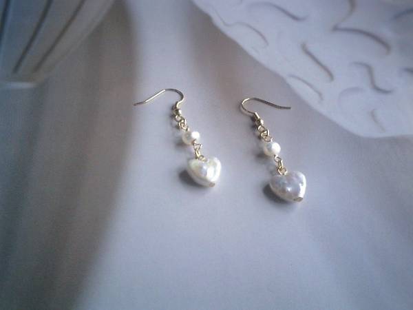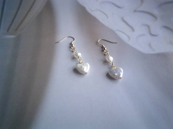 素敵・マニア・・シリーズです♪パール・ハート・・繊細な淡水パールのピアスです♪キュートなハートのピアスです♪小さめのハートが大人のロマンチックしています♪5ミリ位のポテトの淡水パールに11ミリ位のハートの淡水パールを合わせました♪長さは全長5センチ位です♪イヤリングにも変更出来ます♪お揃いのネックレスやブレスレットも出品しています♪シンプルで飽きのこないいつまでも着けられるデザインを考えて作りました♪ハンドメイドをご理解頂いてノークレーム、ノーリターンでお願いします