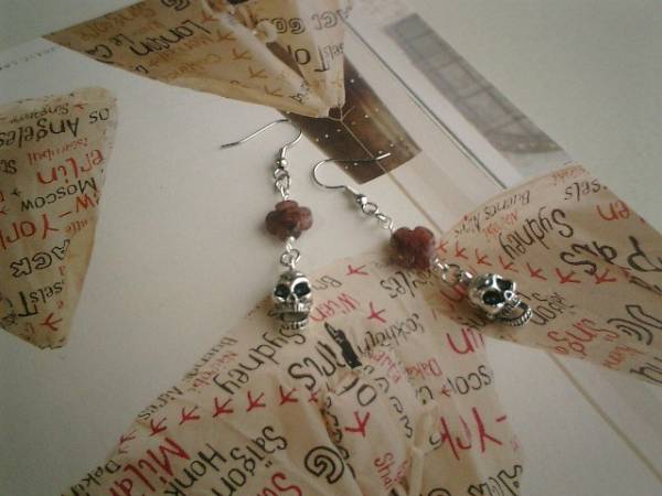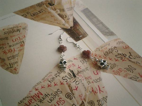 ジャンヌの幸せ・・シリーズです♪髑髏さんに恋して・・キュートな髑髏さんとモスコバイトのピアスです♪ペア1組です♪メタリックな髑髏にモスコバイトのクロスフラワーを合わせて可憐な表情です♪髑髏さんは15ミリ×9ミリ位、モスコバイトは10ミリ位です♪長さは全長7・5センチ位です♪イヤリングにも変更出来ます♪お揃いのネックレスやブレスレットも出品しています♪シンプルで合わせやすいデザインを考えて作りました♪♪ハンドメイドをご理解頂いてノークレーム、ノーリターンでお願いします