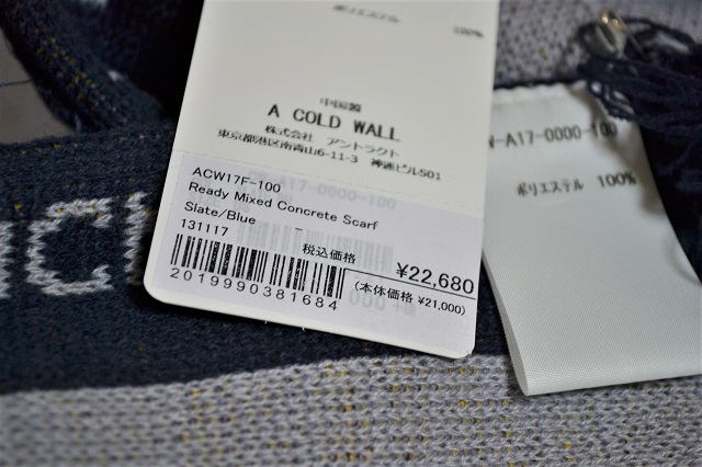工業素材の生コン(レディーミクストコンクリート)から受けたインスピレーションを、デザインに落とし込んだアコールドウォールらしい格好良いデザイン感のマフラーです。