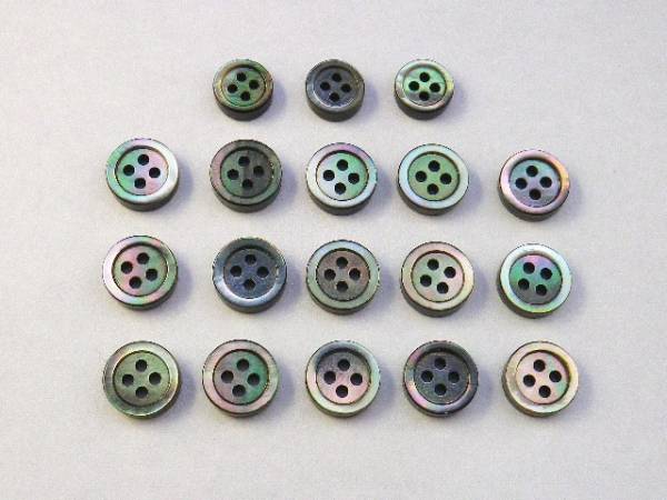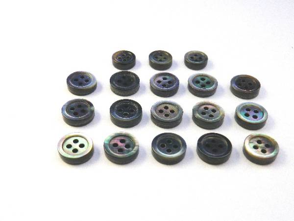 | 黒蝶貝の貴重な3mm厚のボタンをシャツ、ボタンダウン1着分セットにしてご提供 おとくな 9mm3個 11.5mm15個のセットで販売 9mm3個 10mm15個のパターンもございます。 貝は、高瀬貝、黒蝶貝、白蝶貝、高瀬貝ベージュ色がございます。 それぞれ価格が異なりますので、 「 ボタン シャツ1着分 」 にて検索してください。 シャツボタンのサイズを御確認の上ご購入ください。 お手持ちのシャツのボタンを変えてみてはいかがですか? ガラリと雰囲気が変わりますよ。 ボタンを変えると驚く程、洋服のセンスがアップします。 一度おためしあれ。 | ||