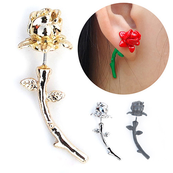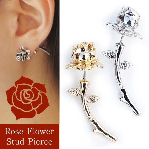 耳を貫くバラが一輪。