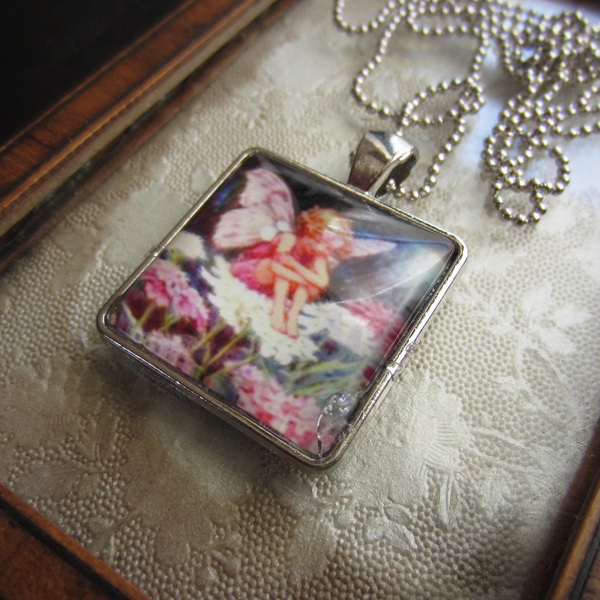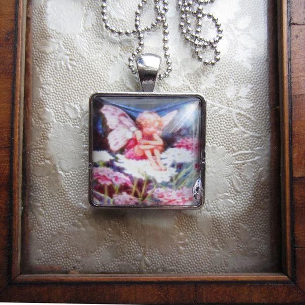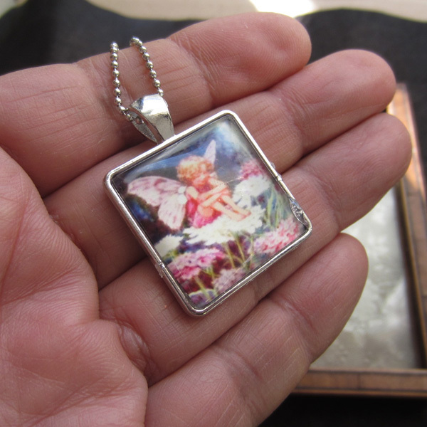 可愛い妖精の絵柄を樹脂で包んだペンダントネックレスです。
