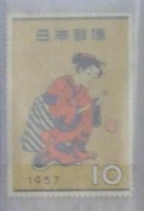 「未使用」昔の切手【趣味週間】 「まりつき」裏ヒンジ 1957.11.1.発行     場所無
