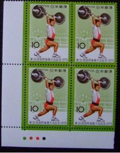 未使用 昔の切手【銘版入り田形】第30回国体 重量挙げ 1975.10.25.発行     A43-9