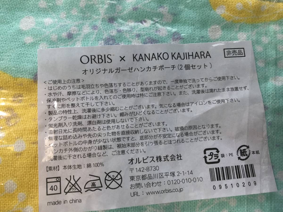 【同梱不可!】 ORBIS ×KANAKO KAJIHARA オリジナル ガーゼハンカチ/ポーチ セット ★非売品