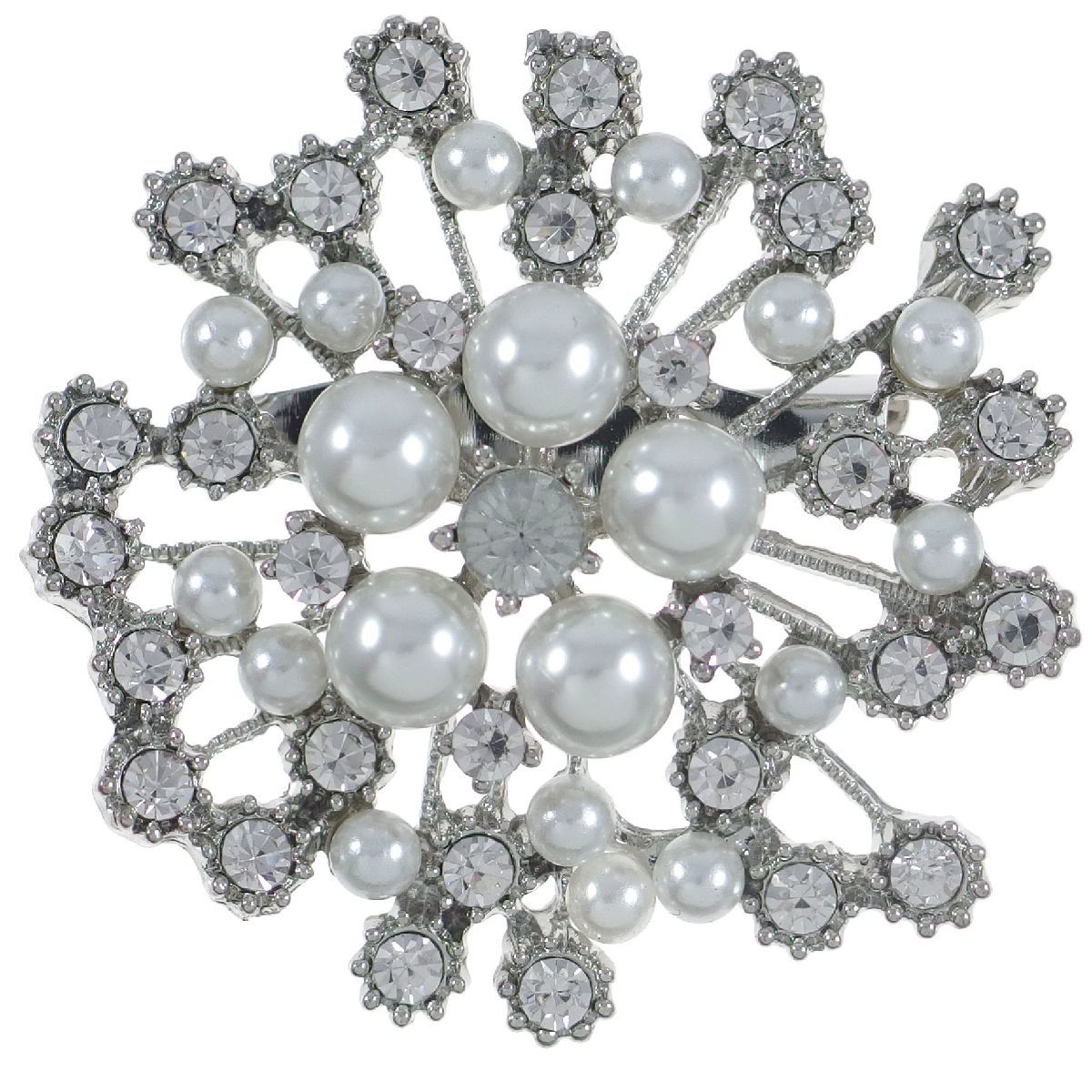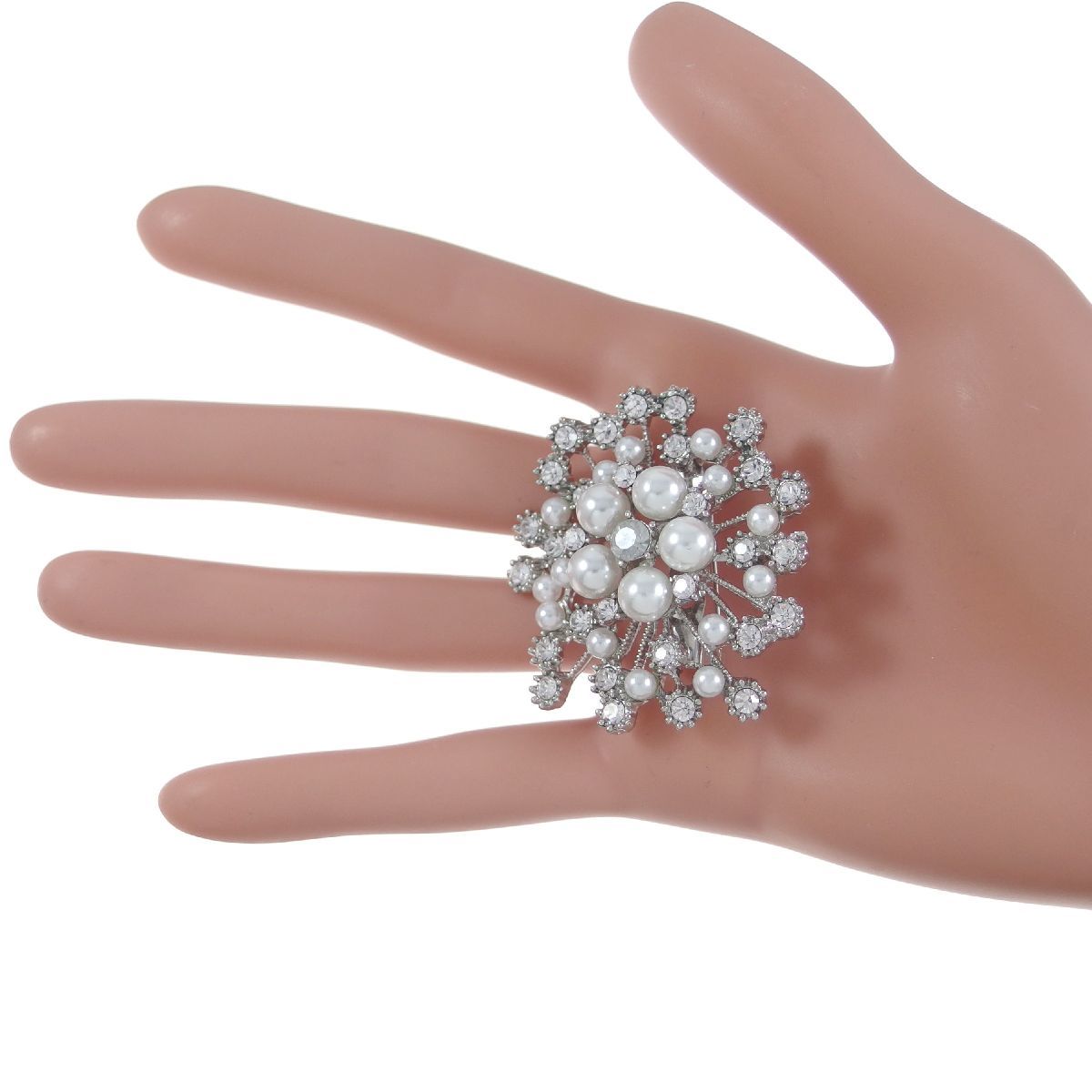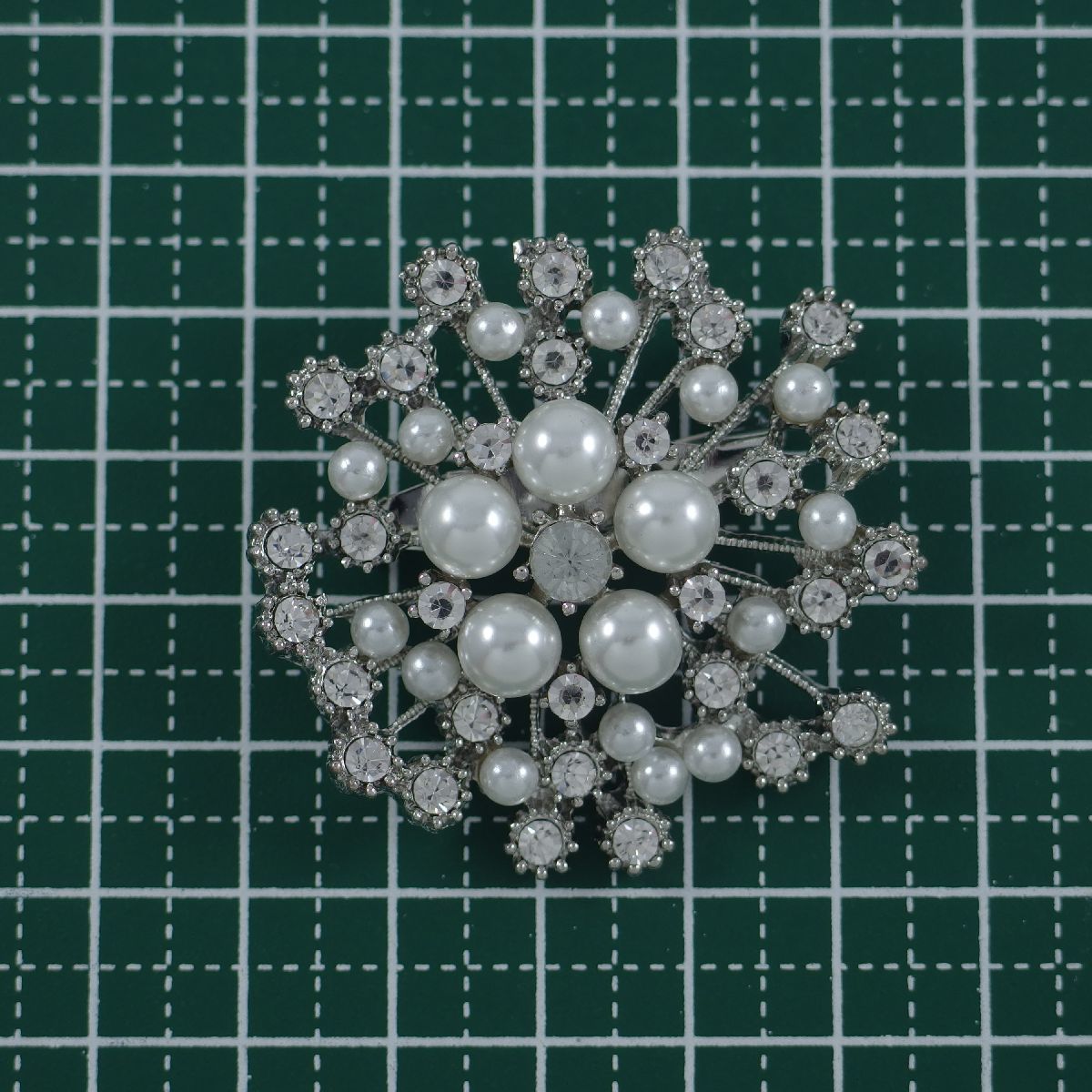 A5305◆ クリアラインストーン & フェイクパール ◆ パーティー * ウェディング ◆新品ブローチ ◆