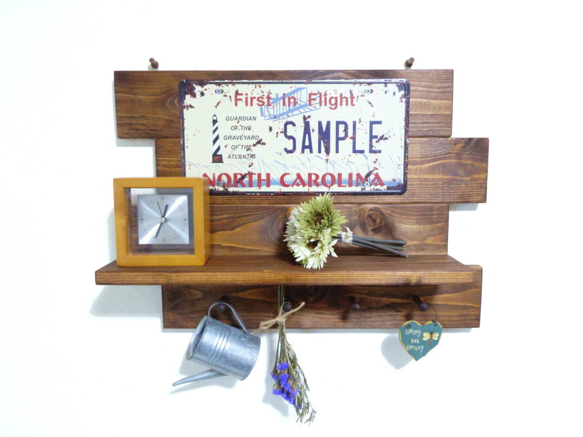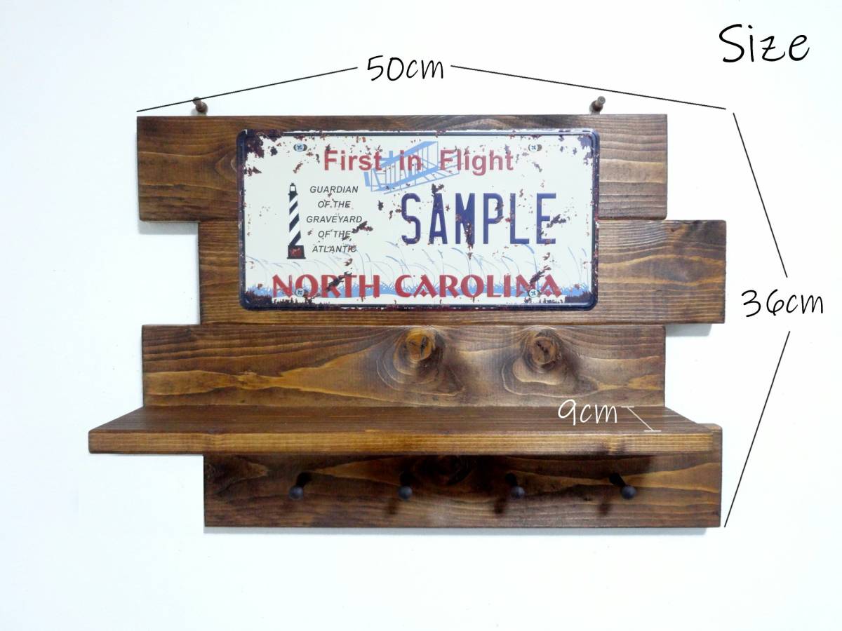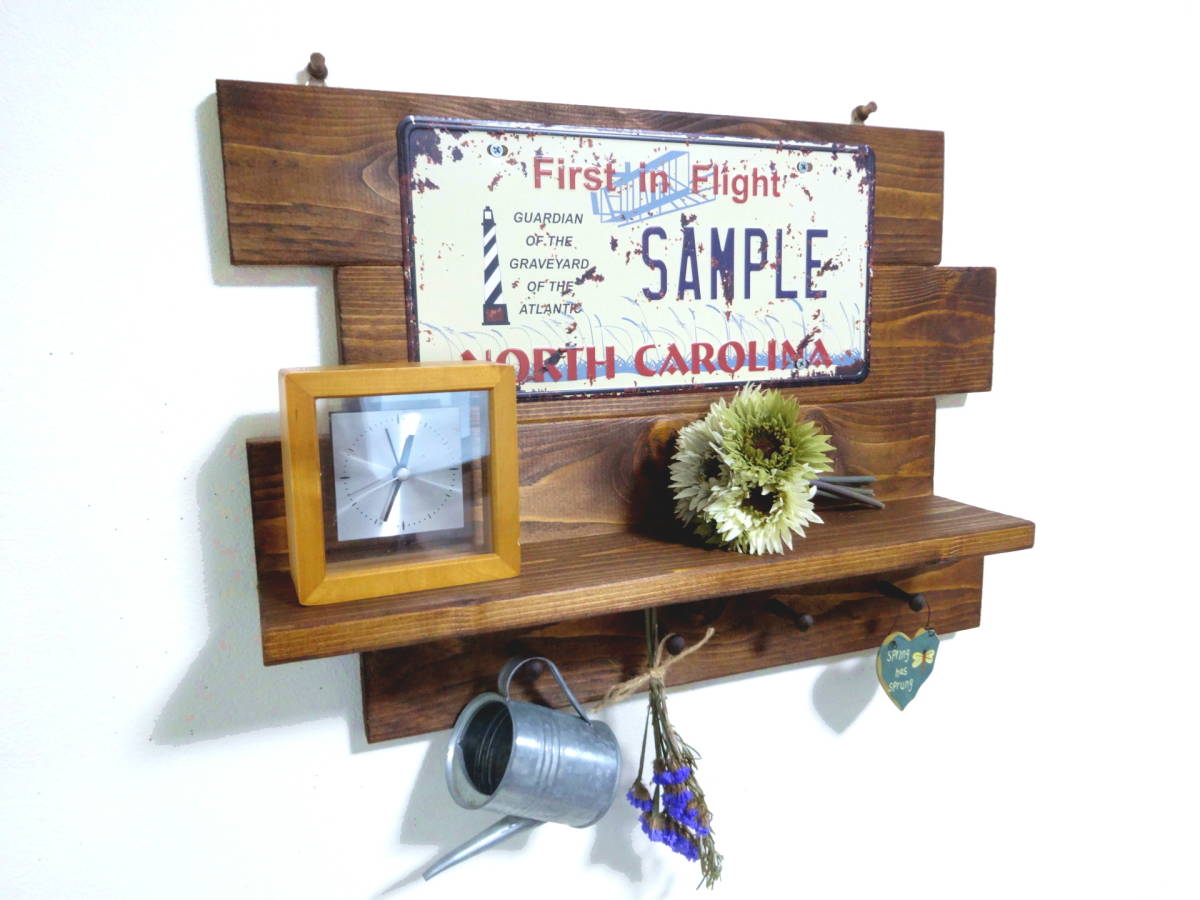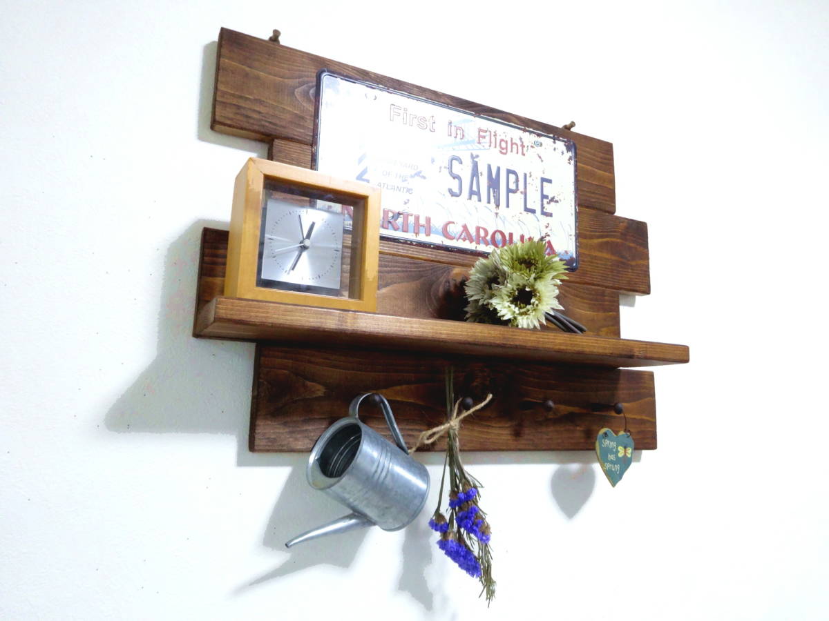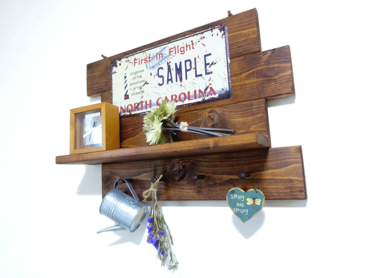 アンティーク風 プレートシェルフ 棚本体に吊り金具が付いているので簡単にネジ、押しピンなど等で壁に付けるようになっています。 サイズ、詳細。 幅50cm×高さ36cm×奥行き11cm 棚面の奥行き9cm ※ネジ類は全て埋め込み加工し、見えなく仕上げております。 同梱発送について。 ・他に出品されているセット商品との同梱発送や取り置きにも対応致します。 同梱発送の場合は、下記の送料表より+400円となります。 ※こちらの商品は「かんたん取引」で出品しておりますので、 複数個ご落札頂いた際は、同梱送料をお知らせいたします。 ※商品ラインナップは随時変更しておりますので 在庫が無くなり次第、再出品を行わない場合があります。 7セット以上の同梱発送をご希望の個人、業者の皆様へ。 まとまった数の商品をご希望の方は、 質問欄からその旨をお知らせ頂ければご案内させて頂きます。 | ||||