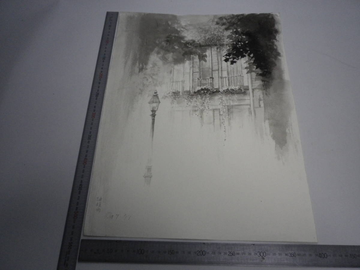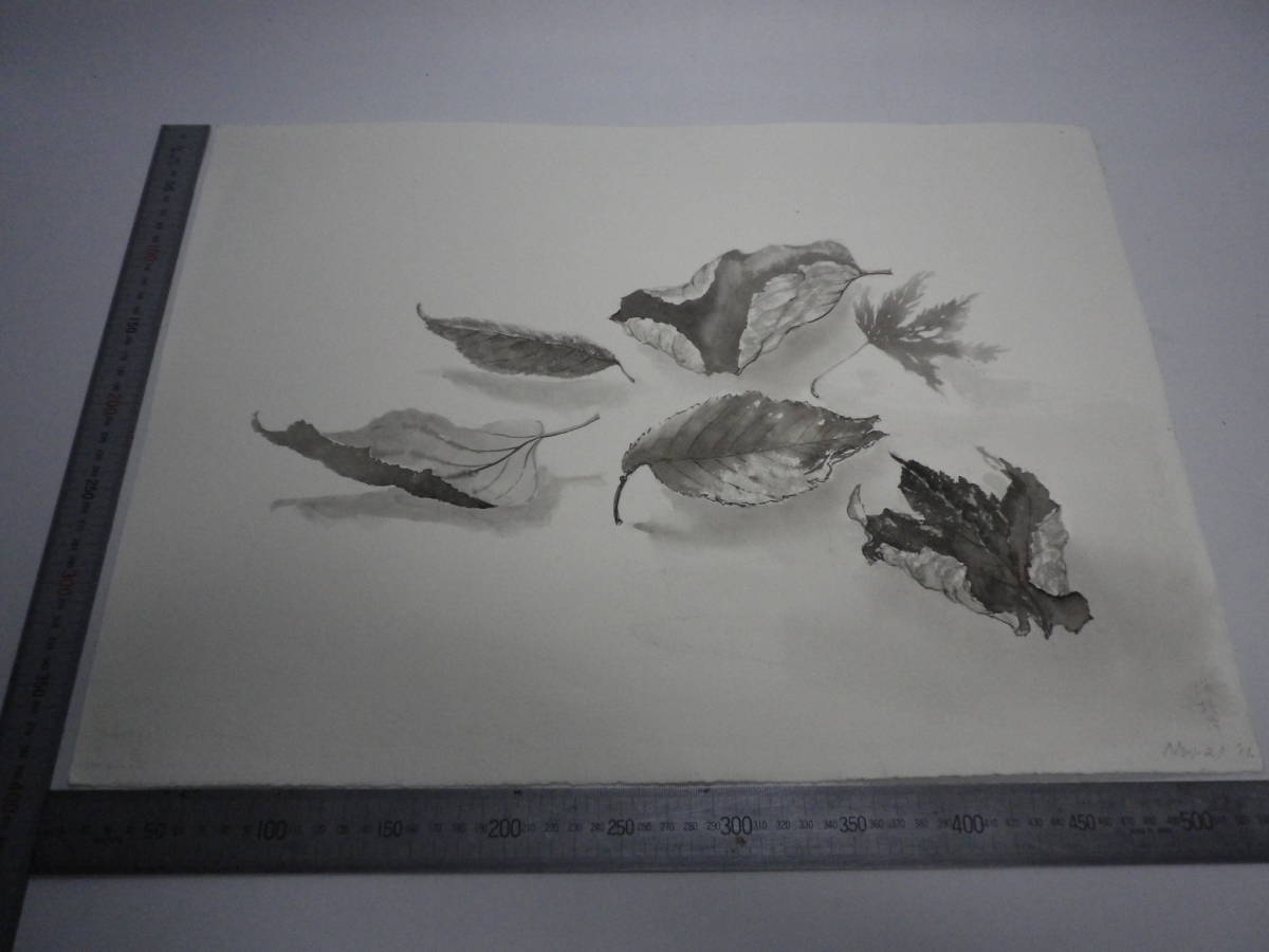 「イタリアの風景・喫茶店 2 ~ 木葉(裏表描画)」水墨画【坂垣内 将泰】作者直筆原画「真作」P10号ハーネミューレ紙(経年保管品)00700220