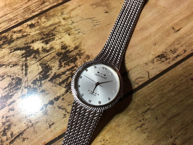 美品 希少 レア ヴィンテージ SWISS HORN スイスホーン FIVE STAR SWISS MADE SS 純正メッシュブレス クオーツ メンズ 腕時計