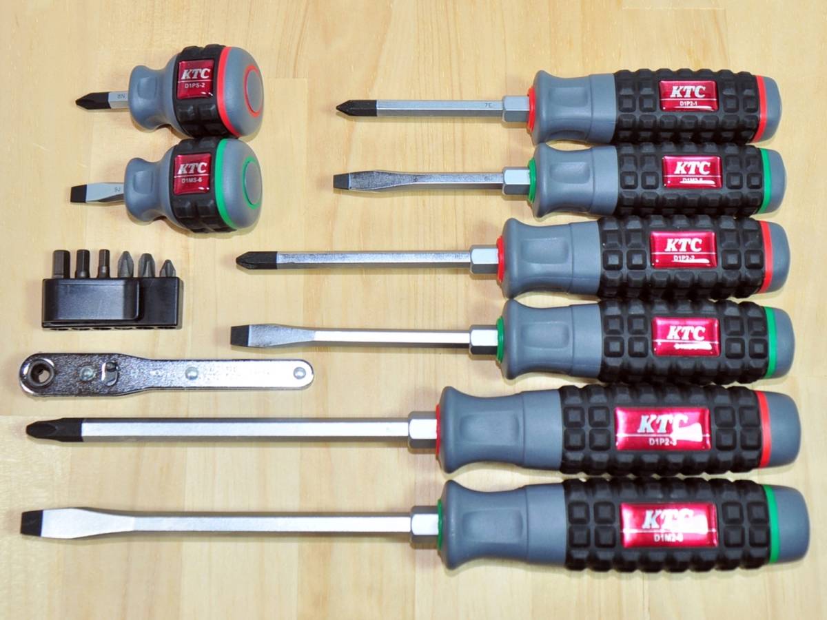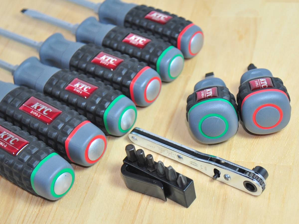 | ★KTC 樹脂柄ドライバー8本 板ラチェット差替えドライバ セット★D1P2.D1M2.D1PS-2.D1MS-6 TMDB8 スタッビ | |