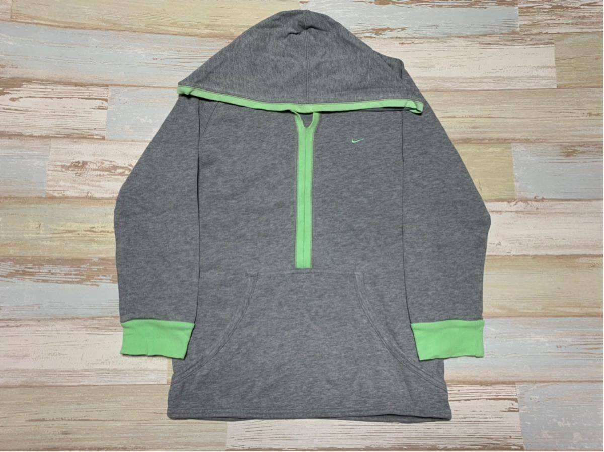 c724 NIKE■ナイキ プルオーバー 薄手トレーナー フード■グレー×黄緑 サイズL■ゆうパックお手軽60レタパ510